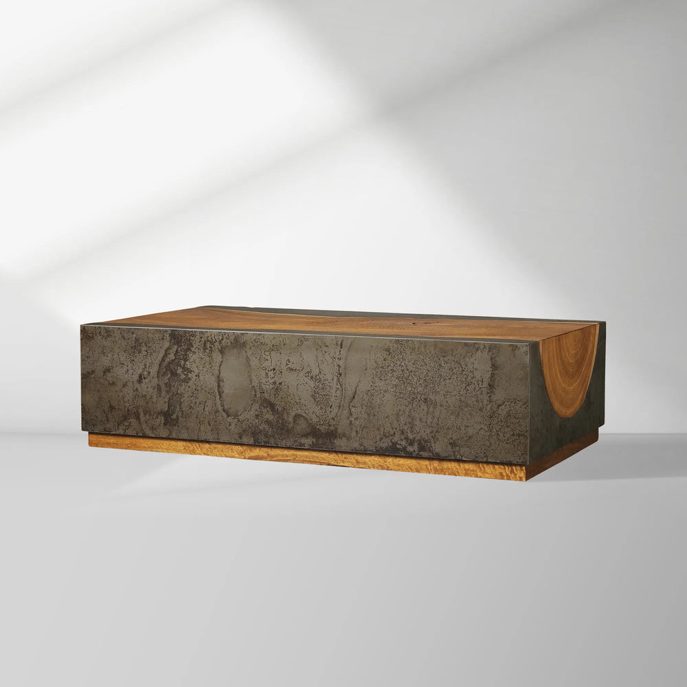 Where nature becomes the artist, the Acacius Coffee Table tells a story of elemental transformation. Handcrafted in Mexico by a family of imaginative artisans, this unique piece begins with steel panels left to weather in the open air, developing an organic patina of rust, stains, and mineral speckles over time. These naturally oxidized metal surfaces are then carefully molded around the graceful silhouette of reclaimed yukas wood, creating a harmonious blend of industrial character and organic form.