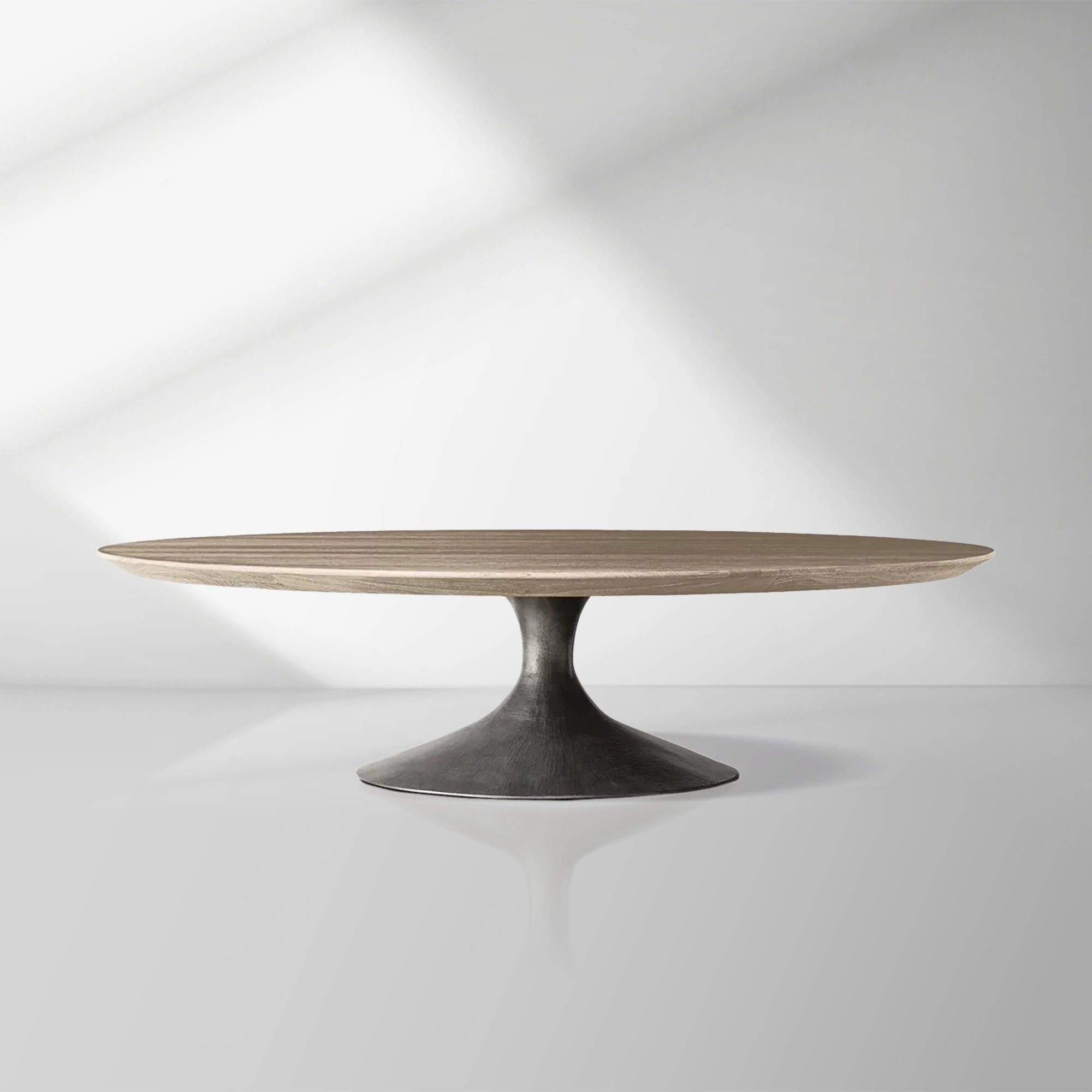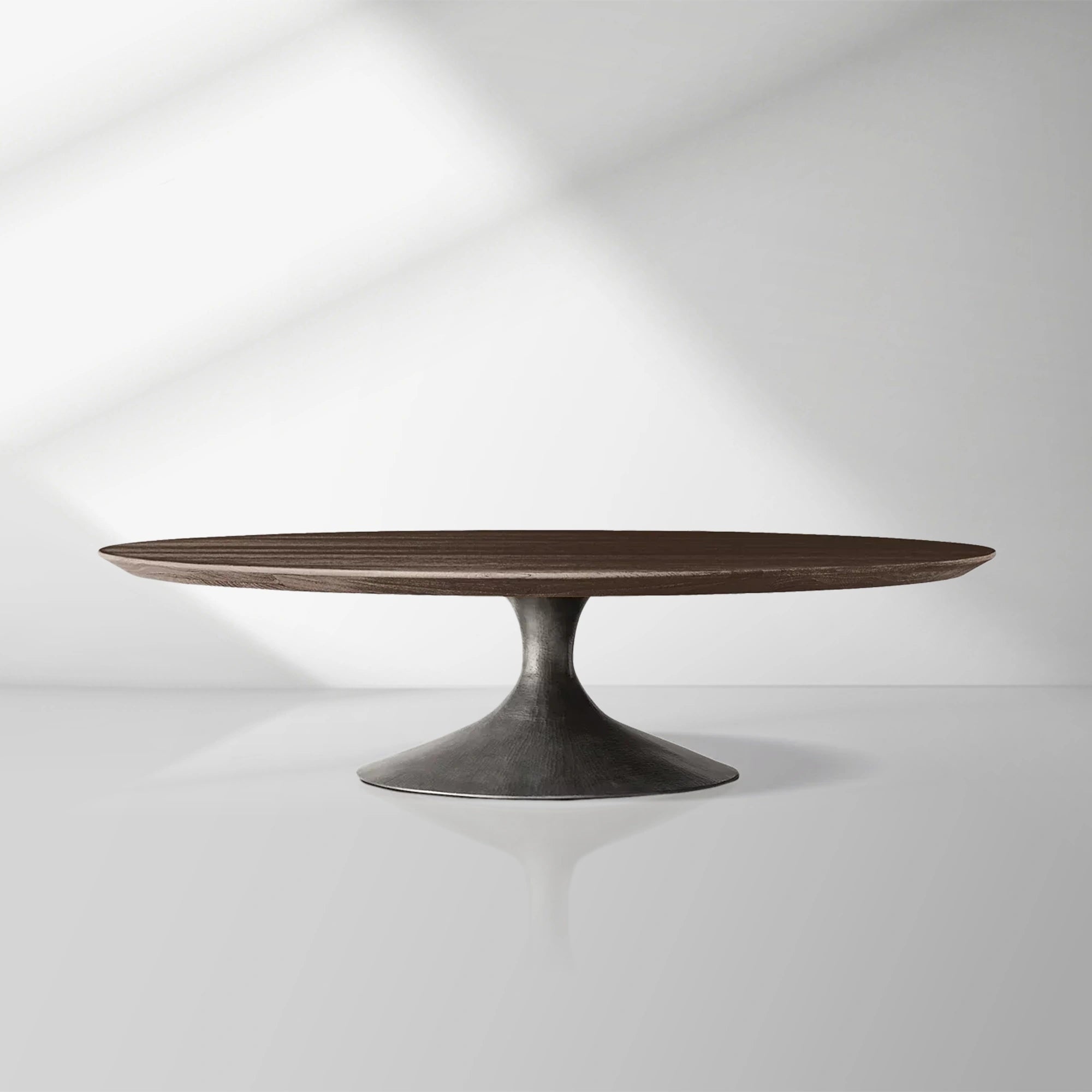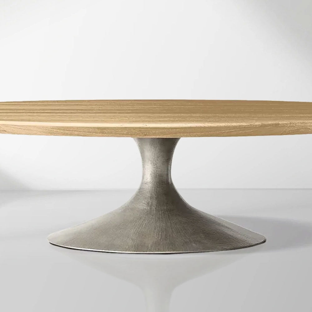Elevate your living space with the Aero Round Coffee Table, where mid-century modern design meets artisanal craftsmanship. Its circular form and gently beveled edge create a streamlined silhouette, while the sculptural cast steel base—finished with a dry-brushed matte texture—adds an industrial yet refined touch.