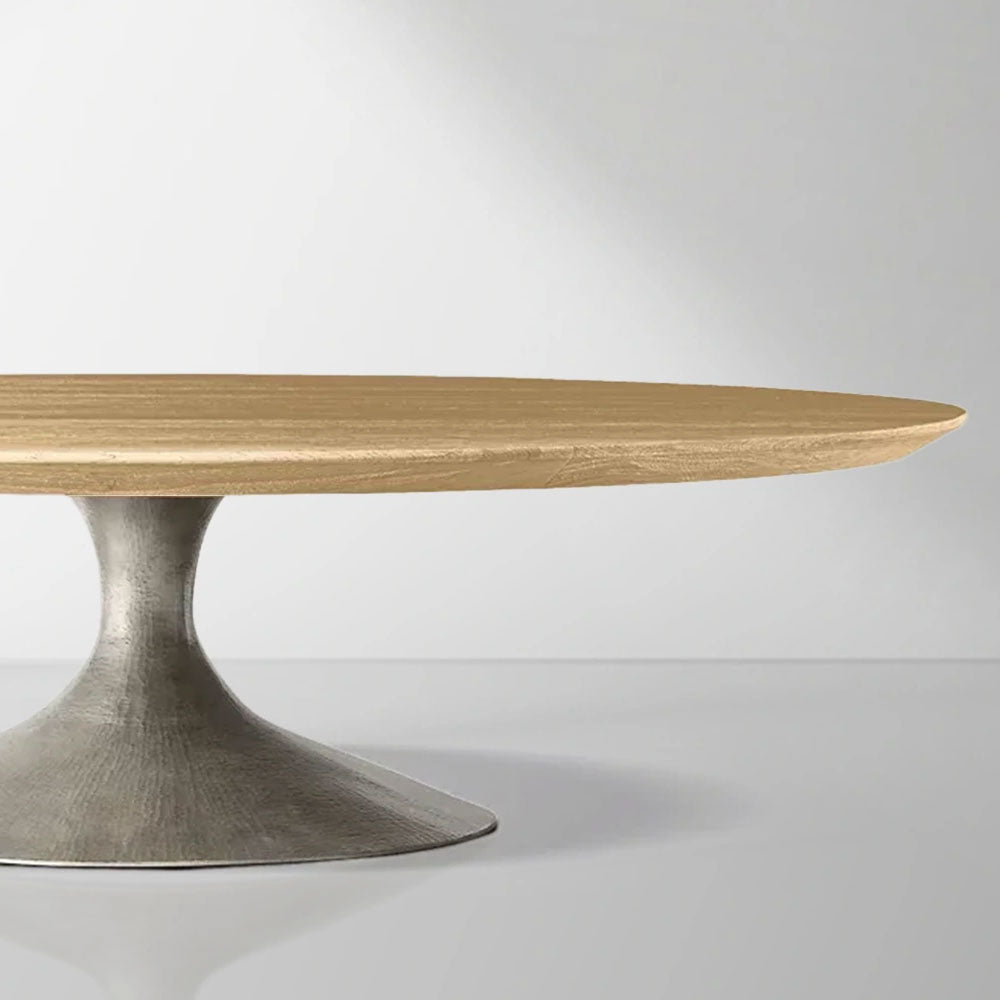 Crafted for both beauty and durability, the tabletop combines solid and engineered wood, available in oak or walnut veneer. Each piece undergoes a multi-step finishing process that enhances the wood’s natural grain—celebrating the textured character of oak or the smooth elegance of walnut.