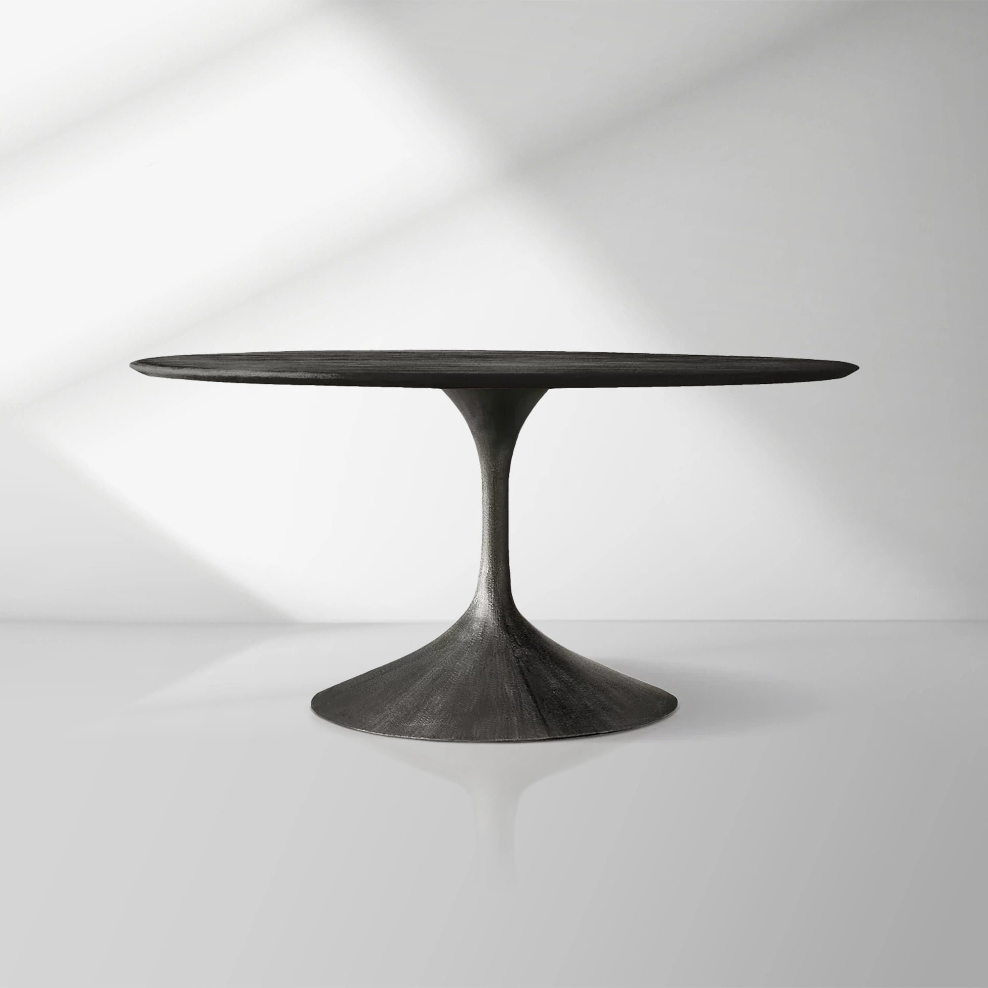 Featuring a matte-textured base made of cast steel with a dry-brushed finish, this table combines durability and distinctive style. Perfect for creating an inviting atmosphere in modern interiors, the Aero Round Table celebrates craftsmanship and timeless design.