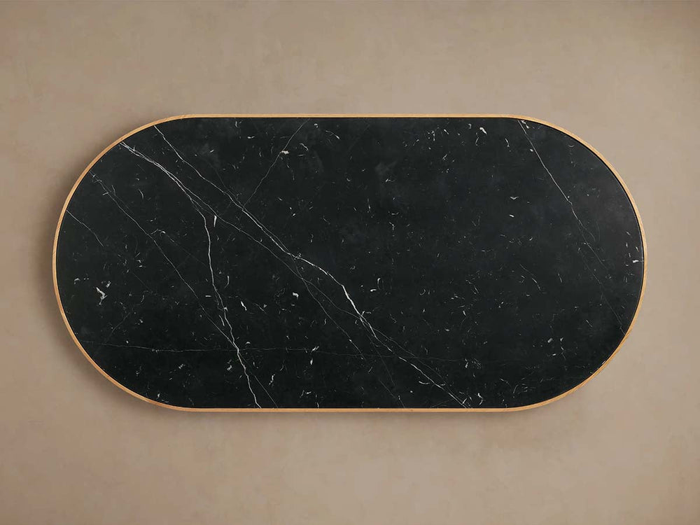 The Astor Coffee Table brings timeless sophistication to any living space with its gracefully curved racetrack silhouette and artisanal details. Featuring a stunning inset marble top that appears to float above its base, this piece is wrapped in continuous reeded detailing crafted from solid oak—creating a visual lightness that enhances its elegant presence.