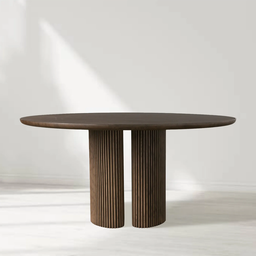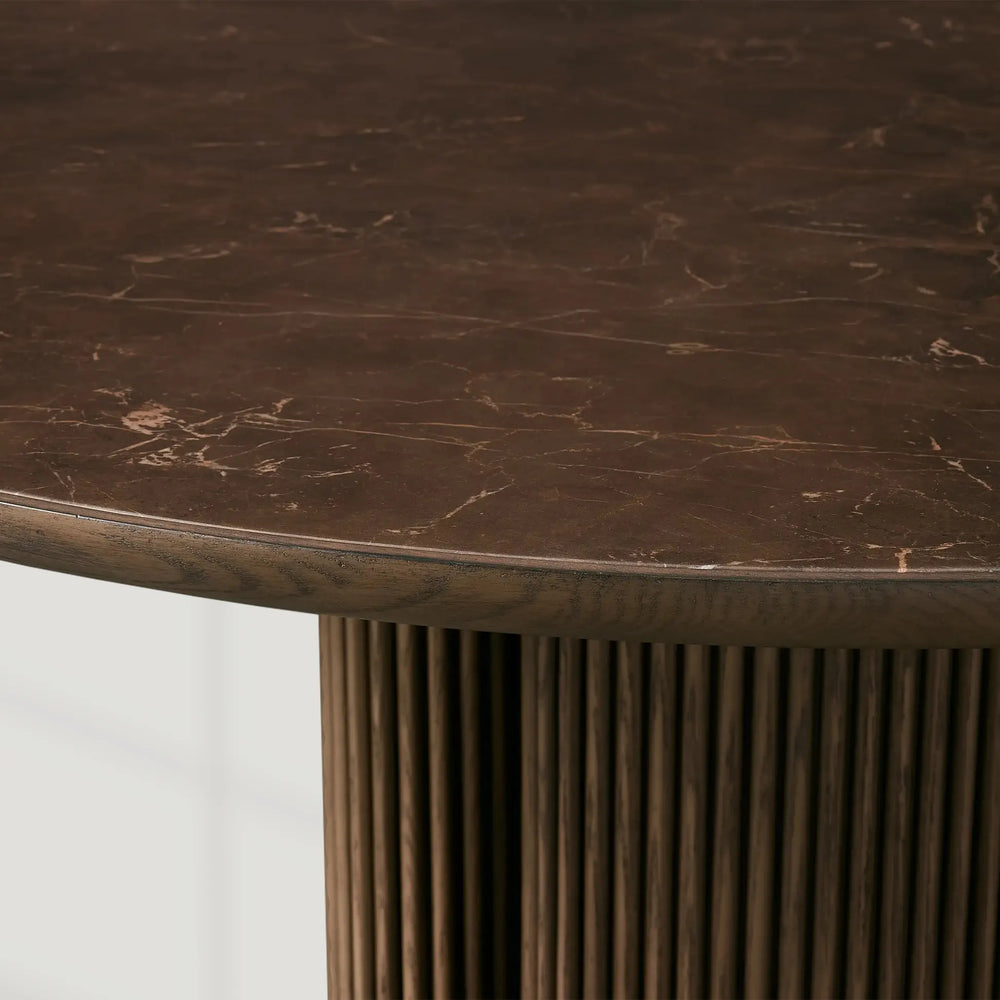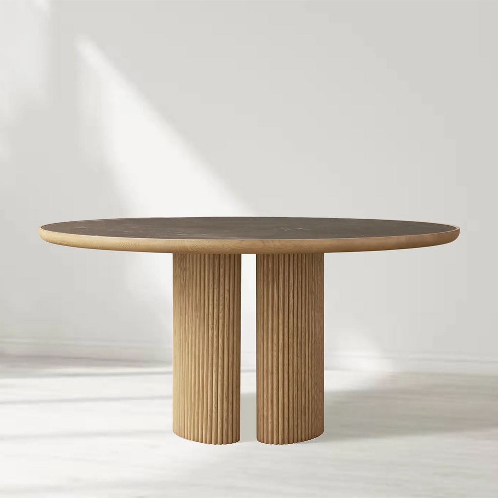 The Astor Round Dining Table embodies a harmonious blend of natural materials and graceful design. Featuring an inset marble top paired with refined oak slats and gently curved silhouettes, this collection brings both warmth and sophistication to your dining space.