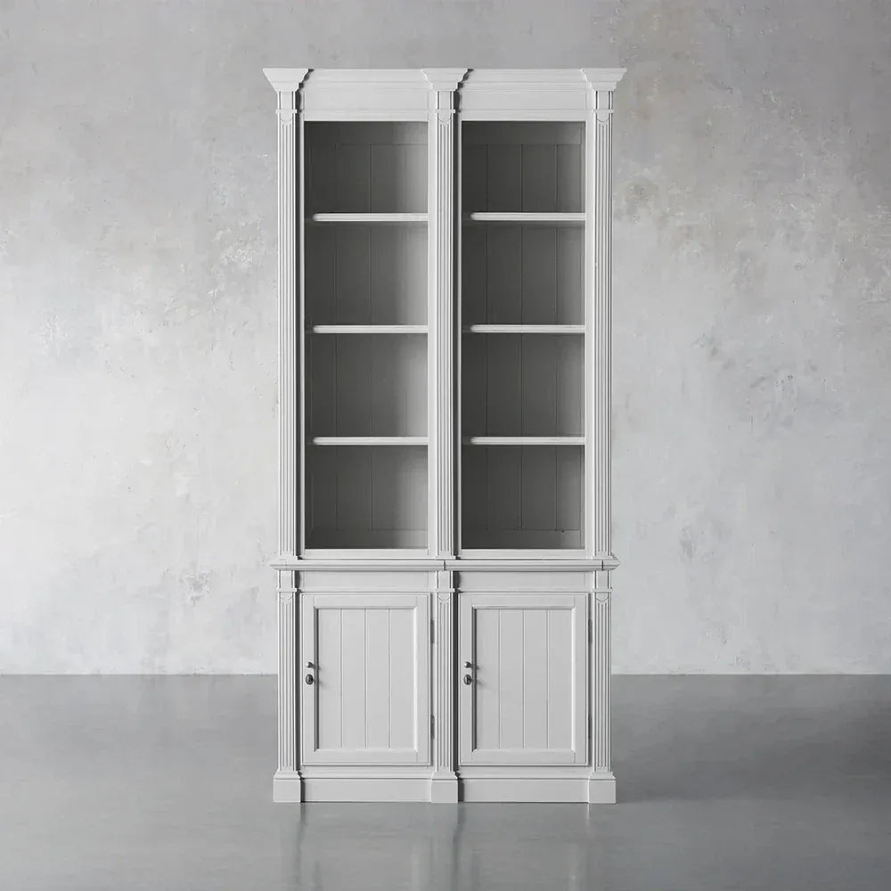 Experience the grandeur of classic library design with the Athens Four Row Bookcase, an exceptional display cabinet that combines neoclassical elegance with unparalleled storage capacity. Expertly crafted from solid yellow poplar wood, this magnificent piece features four rows of adjustable shelving, offering expansive space for books, collectibles, and decorative objects. Elaborate hand-carved trim, recessed panels, and traditional moulding create the illusion of custom-built architectural millwork, bringing the sophisticated charm of a traditional English library to your home.