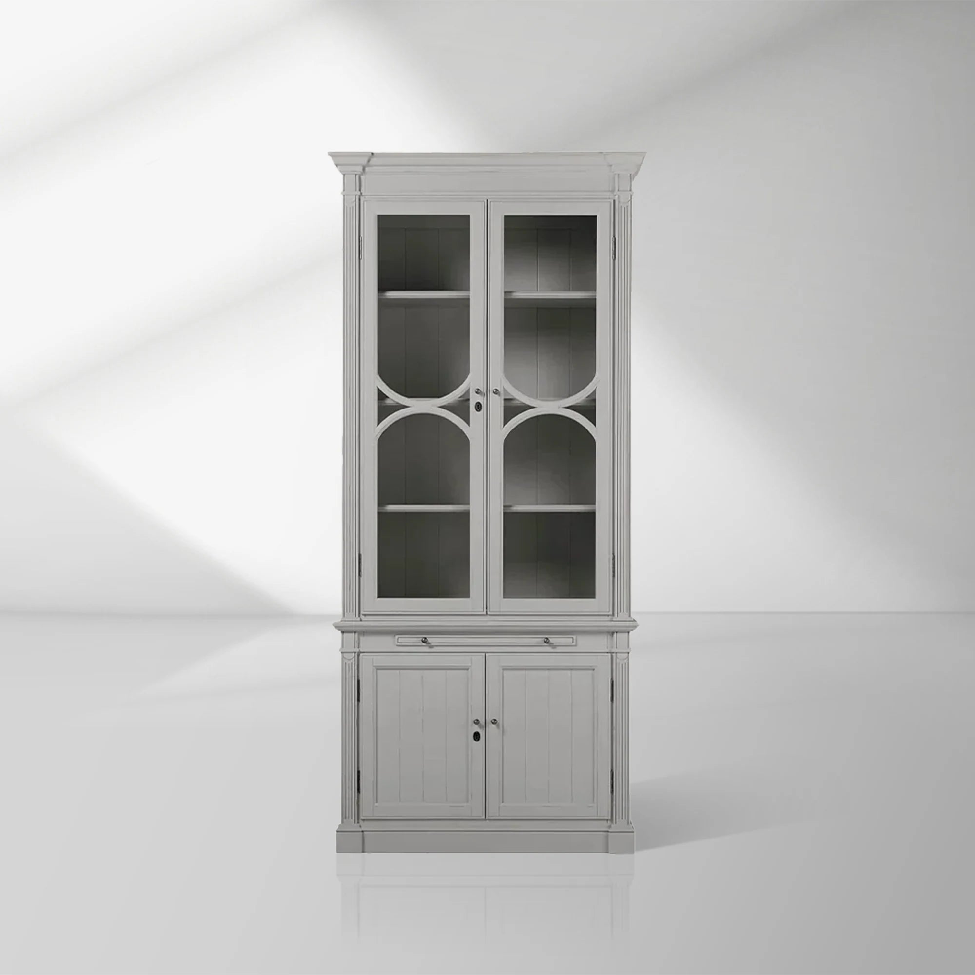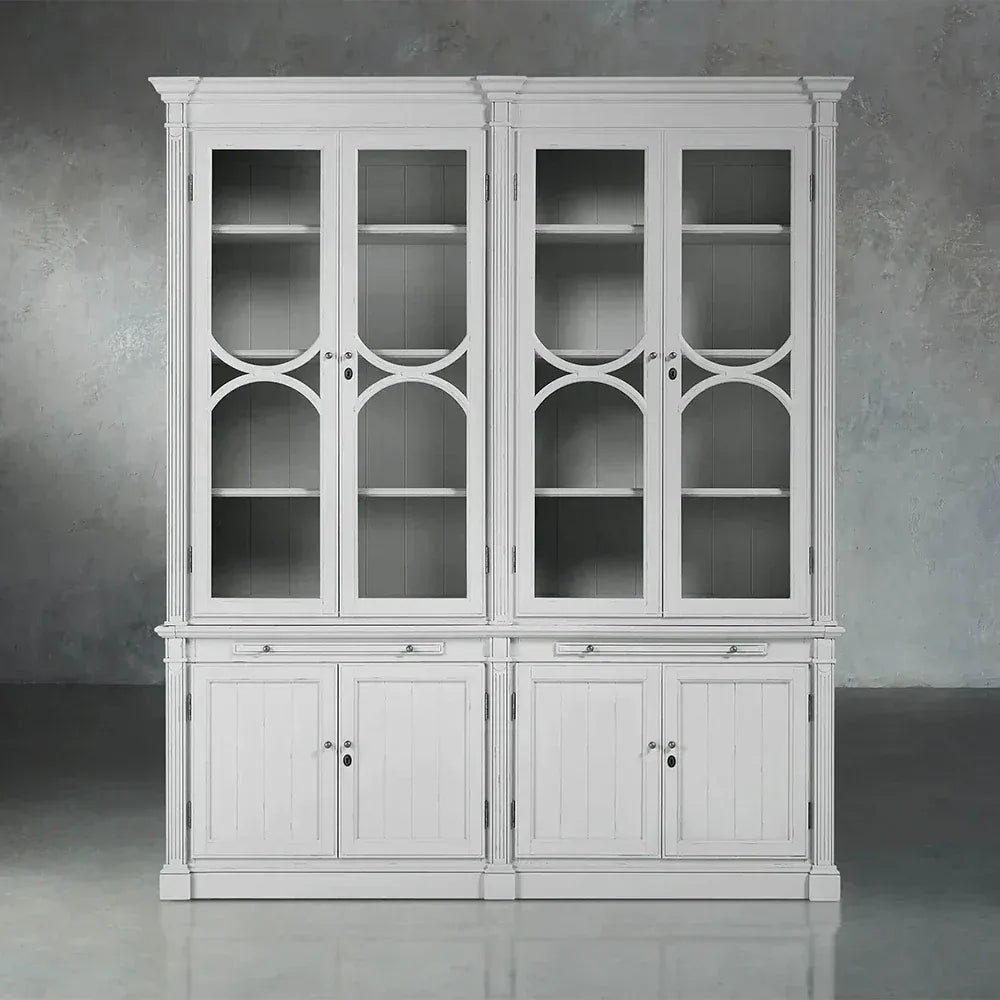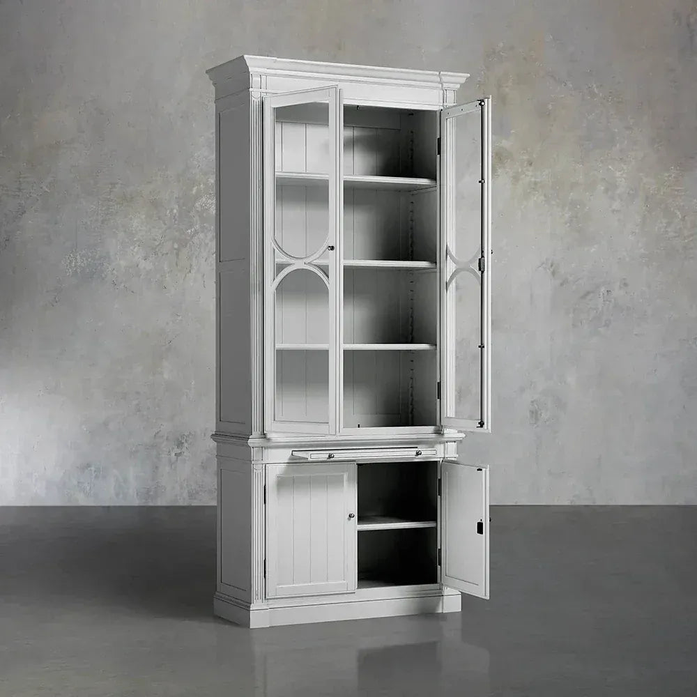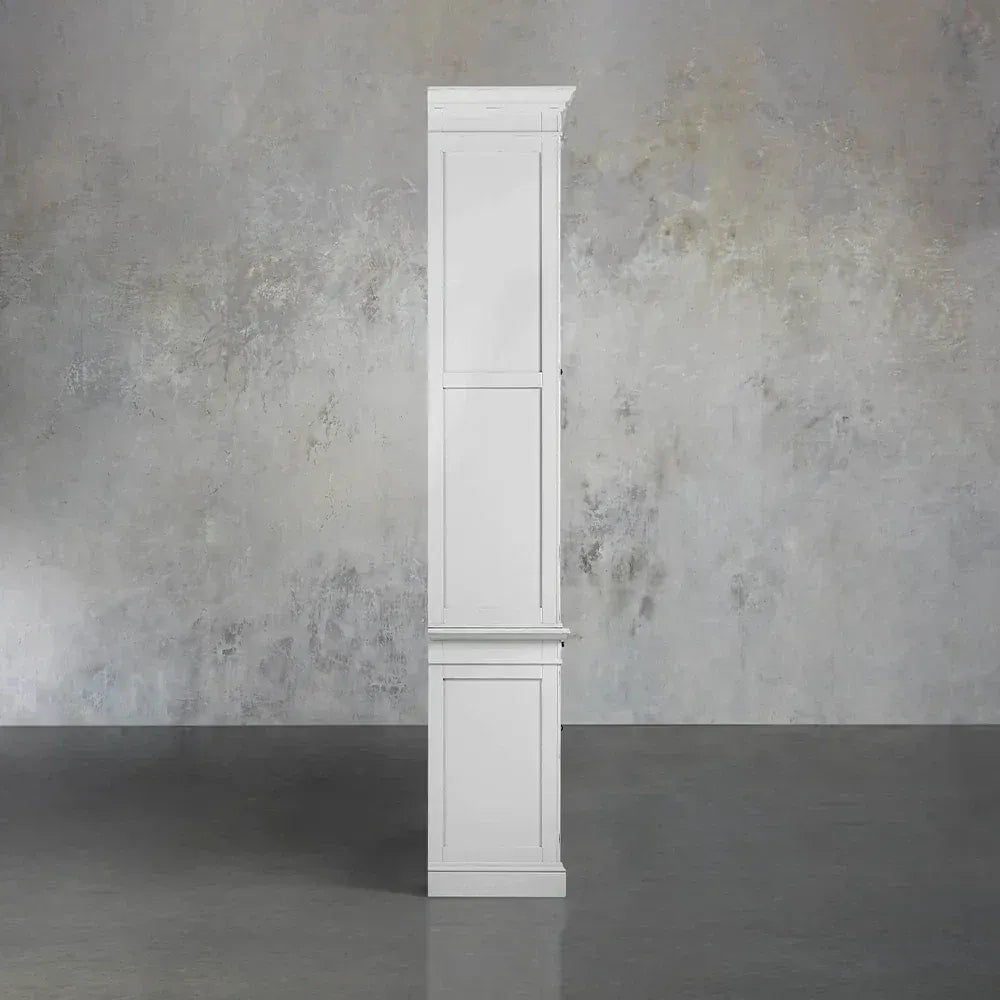 Introducing the Athens Modular Single Display Cabinet – a refined centerpiece that captures the timeless elegance of neoclassical design in a versatile standalone unit. Meticulously handcrafted from solid yellow poplar wood, this display cabinet showcases the artisanal excellence of our Athens collection, featuring glass-front doors with decorative moulding that beautifully protect and highlight your most treasured possessions.