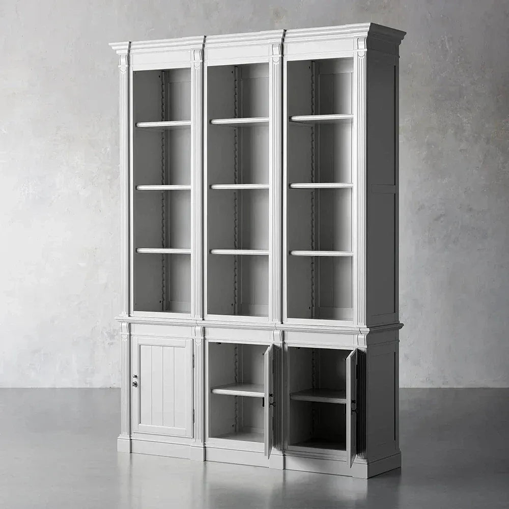 - **Triple-Row Configuration:** Offers expansive space for books, art objects, and collectibles