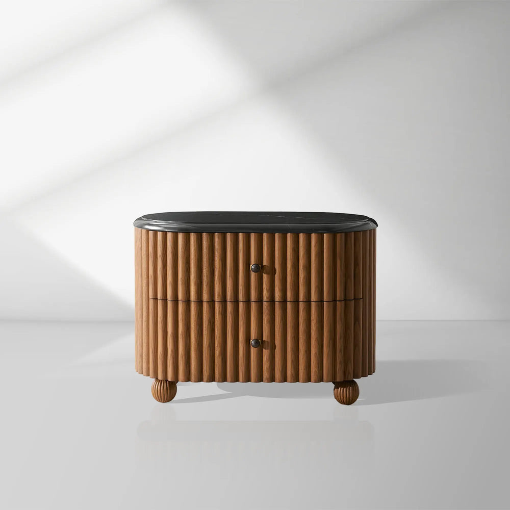 Elevate your bedroom with the Carlisley Bedside Table, a striking fusion of artisanal craftsmanship and timeless elegance. Featuring a sleek Black Marquina marble top and hand-forged brass details, this piece combines functionality with sculptural beauty.