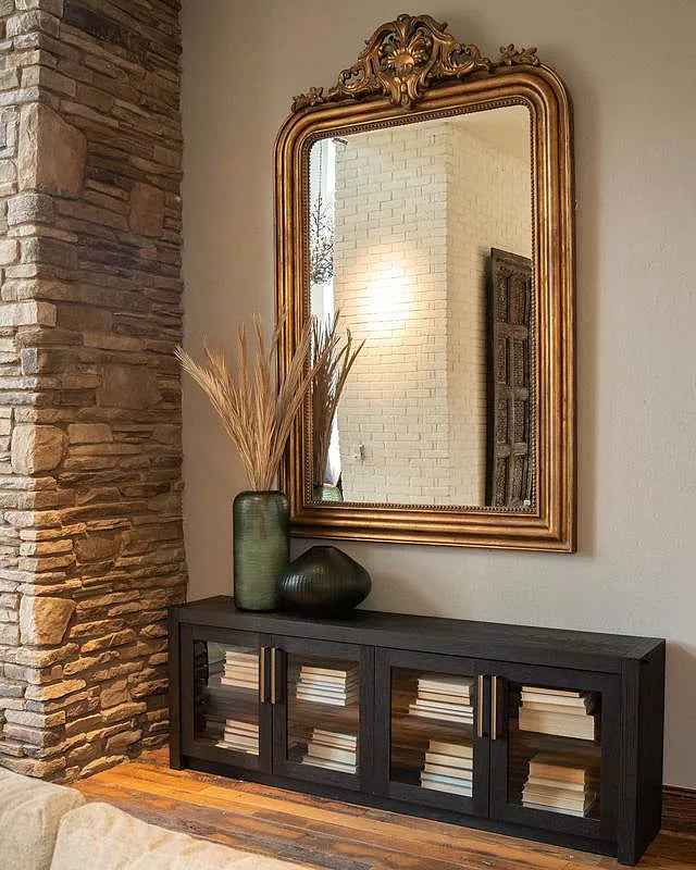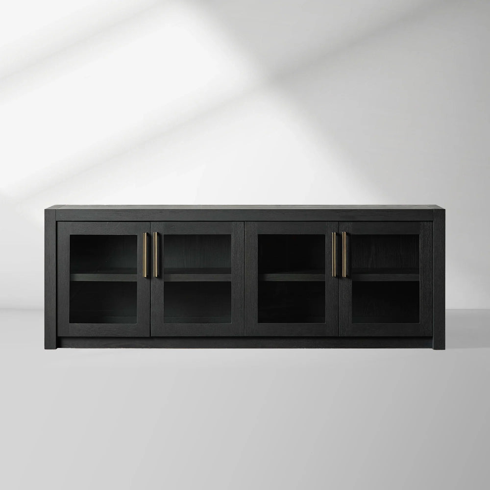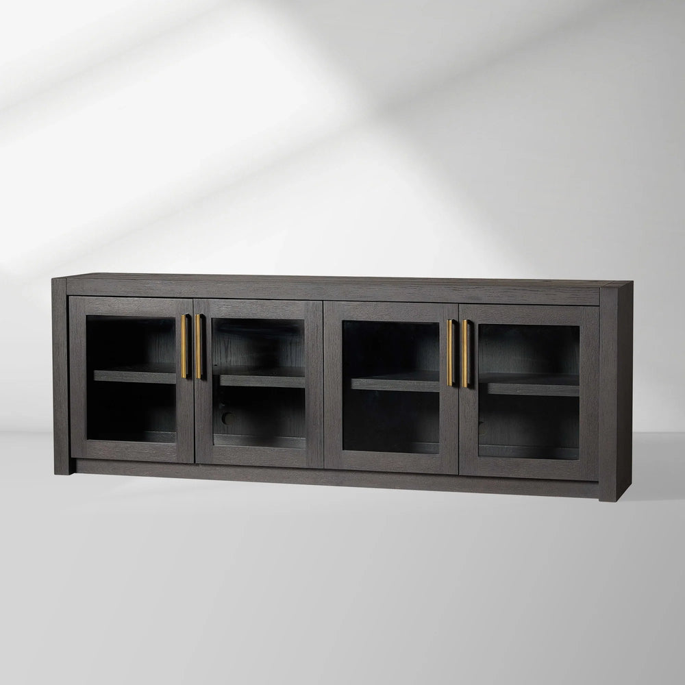 Combining spacious storage with refined details, this console features solid brass hardware in a soft champagne tone, two adjustable shelves, and integrated cord-management holes for effortless organization.