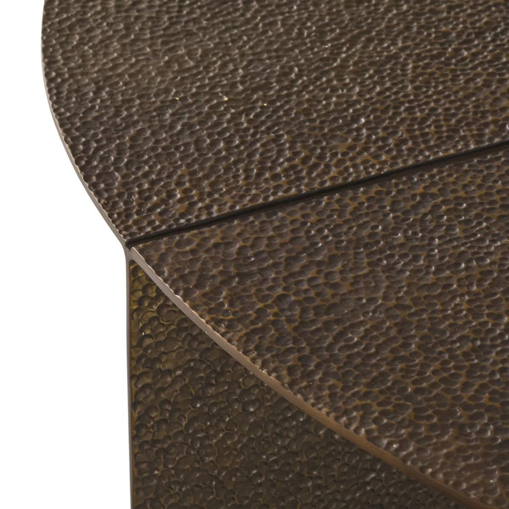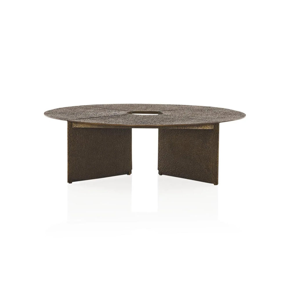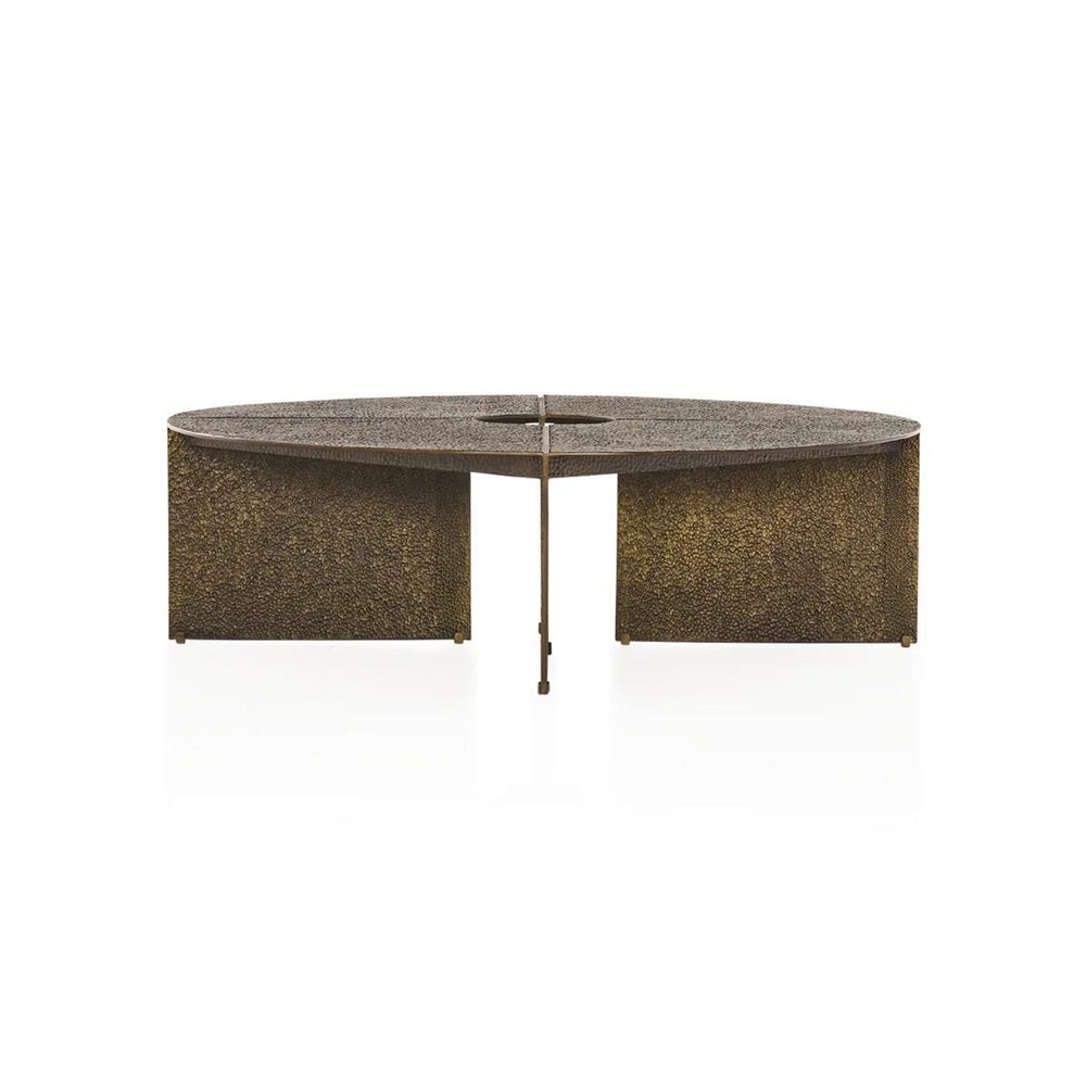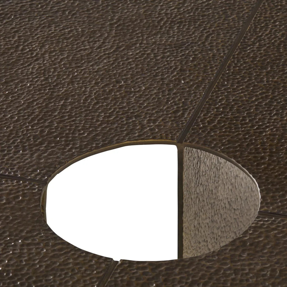 A commanding focal point for any room, the Bowie Coffee Table features a solid, textured hammered surface crafted from robust 8mm cast aluminum. Its captivating form plays with light and shadow, while the rich, antiqued bronze finish adds a layer of timeless warmth. This table masterfully blends an industrial edge with artisanal character, creating a statement of enduring style.