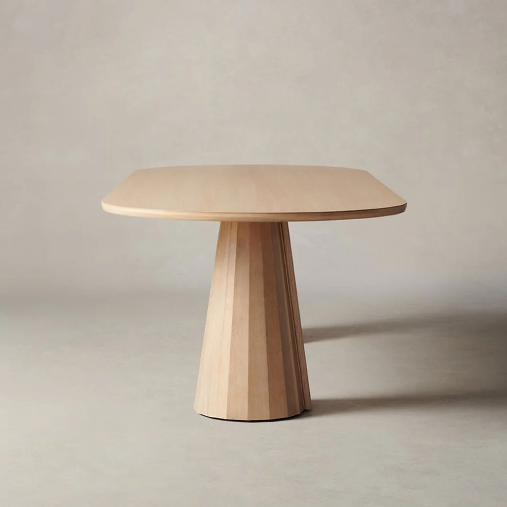Center your dining space with the elegant Brank Oval Dining Table, where modern design meets exceptional craftsmanship. This striking piece features a beautifully beveled-edge tabletop paired with a uniquely faceted conical base, creating a perfect balance of sophisticated style and lasting durability.