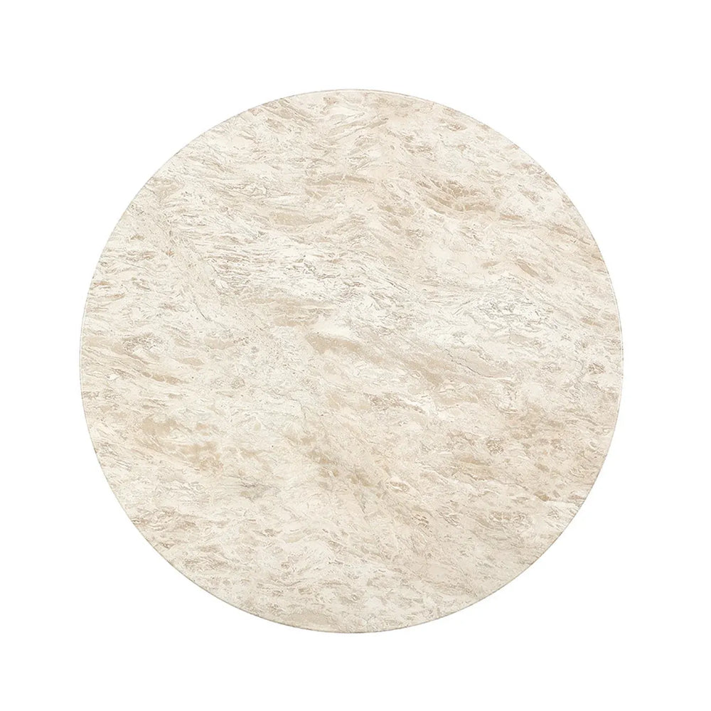 - **Marble Tabletop:** Polished cream marble surface highlighting natural veining and organic characteristics