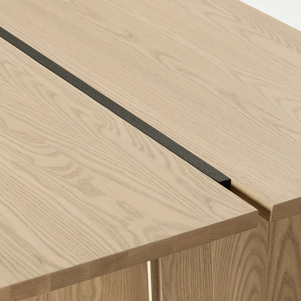 Make a dramatic statement with the Carlisy Wood Dining Table, where bold geometry meets artisanal craftsmanship. This exceptional table showcases wide planks of kiln-dried ash wood converging at striking angles, creating a dynamic surface that becomes the immediate focal point of any dining space.