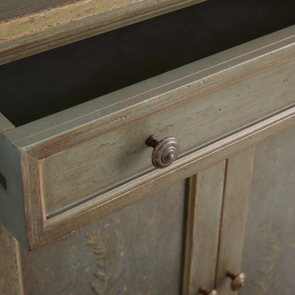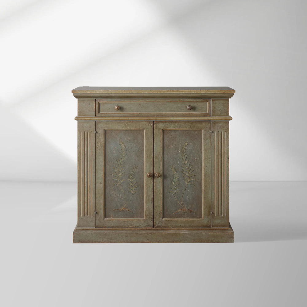 • **Hand-Painted Artistry:** Each buffet is adorned with a delicate fern motif, meticulously painted by an Italian artist over a softly distressed green ground.