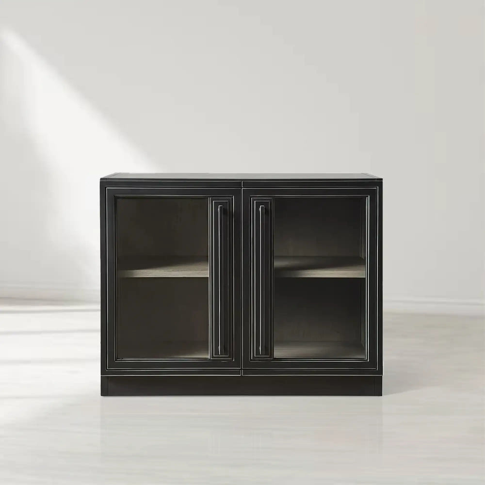 Drawing inspiration from the charming doors of a classic French boutique, the Factory Small Cabinet artfully blends industrial character with timeless appeal. Designed for versatile placement in any room, this cabinet combines the warm, natural beauty of sustainably sourced mahogany and ash with the rustic touch of solid iron hardware. Its tempered glass doors offer a clear view of your displayed treasures while keeping them protected.