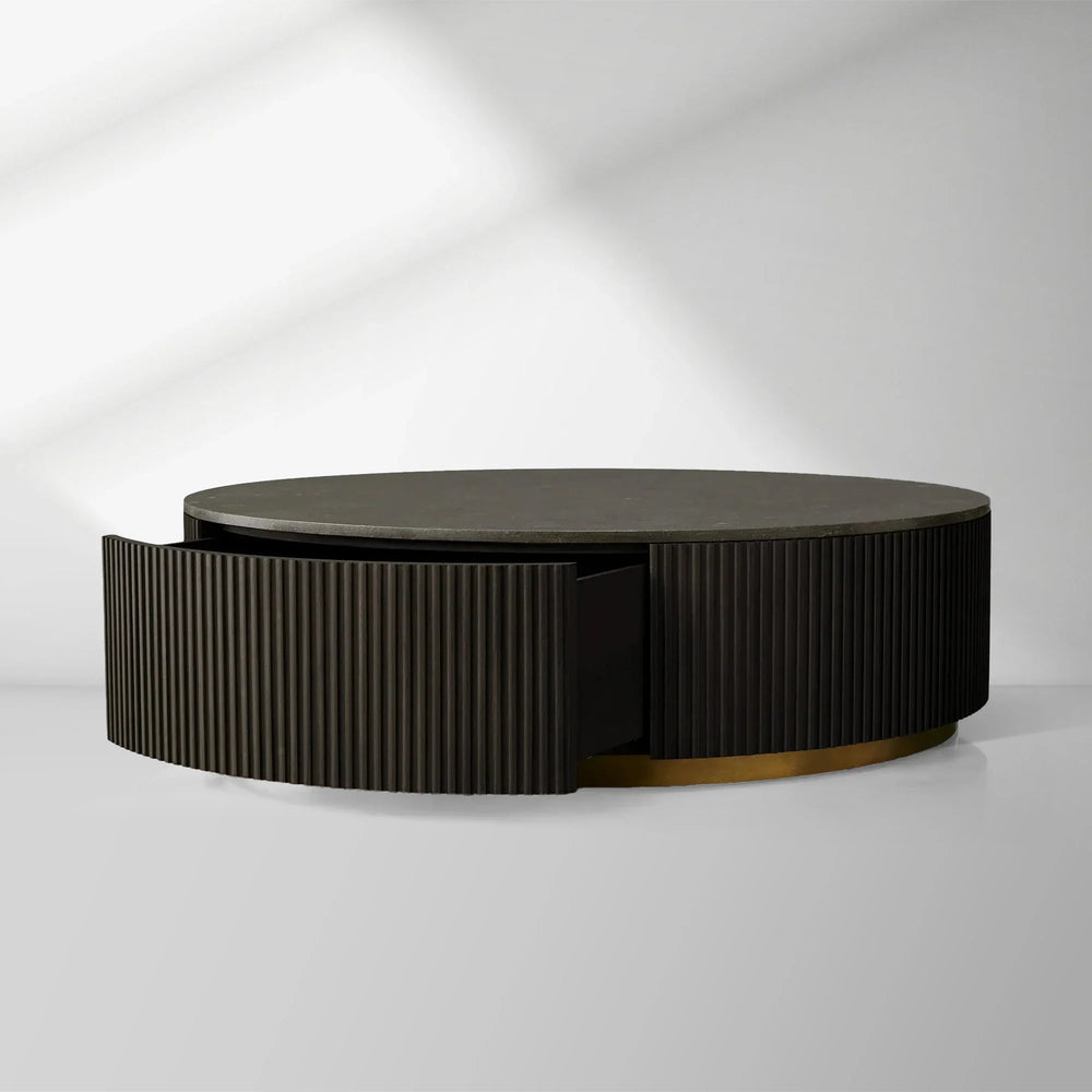 The Finnley Collection introduces a refined mixed-material design that brings elevated style to any interior. This round storage coffee table artfully combines hand-finished white oak or Finnish pine with exquisite reeded oak detailing, topped with a graceful stone surface. The result is a chic, versatile piece that seamlessly transitions from living and dining areas to bedrooms and offices.