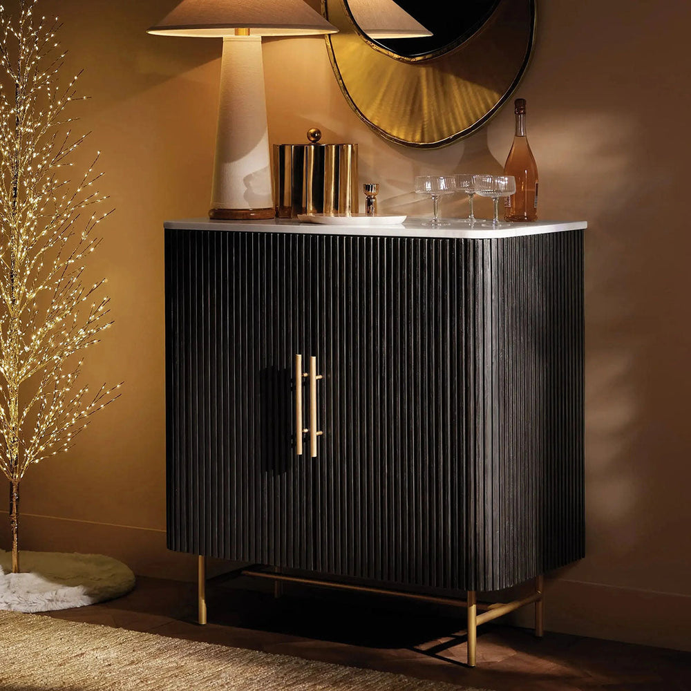 Introducing the Finnley Bar Cabinet, a statement piece that masterfully blends eclectic inspiration with contemporary design. This cabinet elevates any room with its sophisticated mix of premium materials and artisanal details.