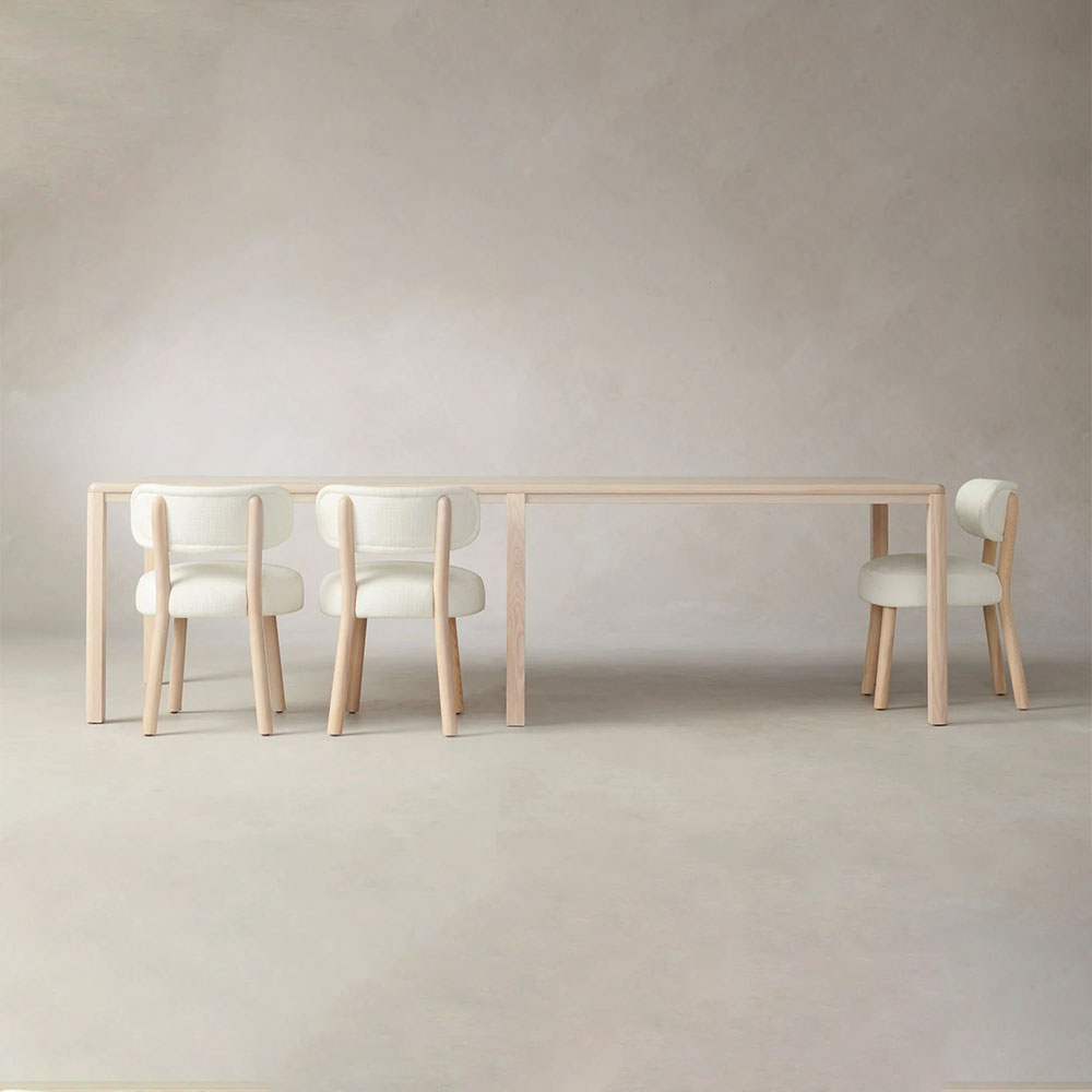 The Ford Dining Table reinterprets the Rural timeless Parsons silhouette through a contemporary lens, blending slender proportions with artisanal solid wood construction. Expertly crafted from kiln-dried ash, it features a gracefully rectangular top with a refined half bullnose edge and legs with softly curved details, creating an airy yet sturdy centerpiece suited for a range of dining environments.