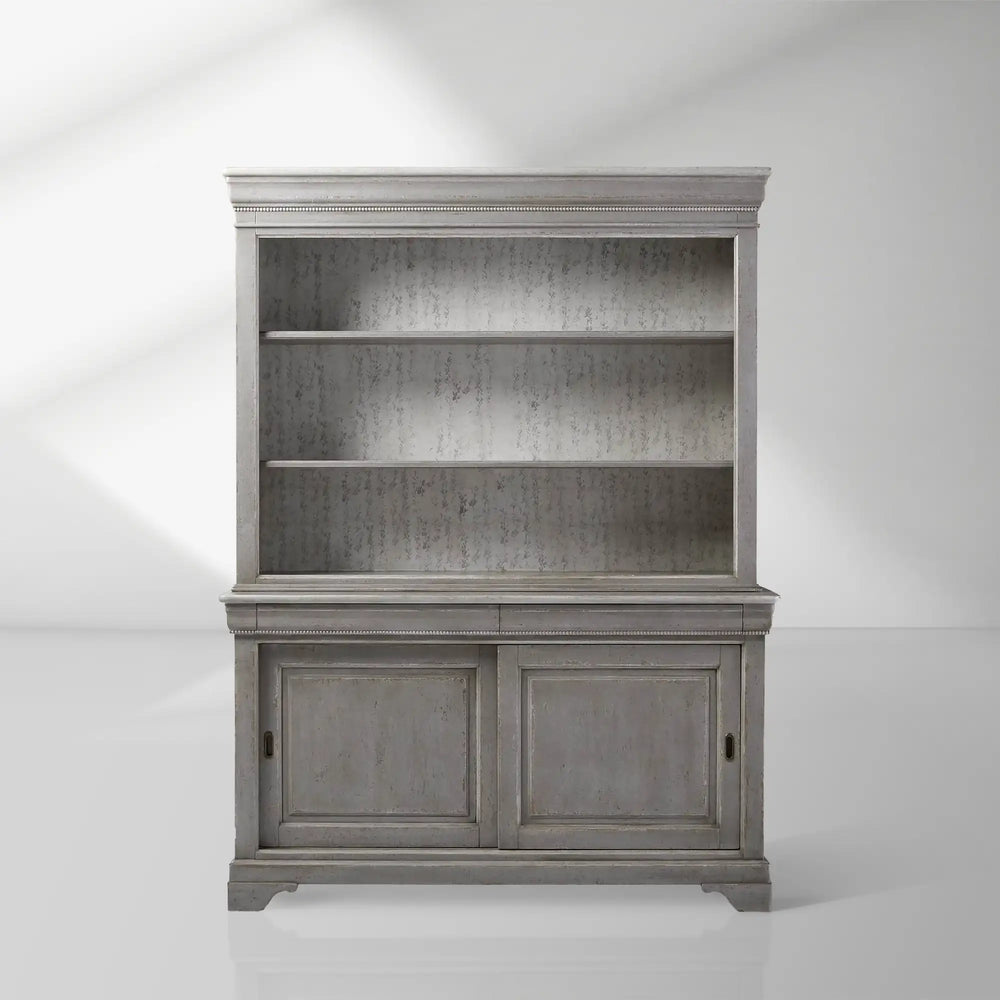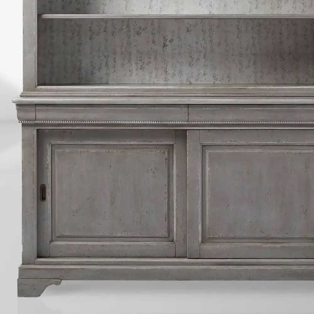 Meticulously handcrafted in a renowned furniture-making region of Italy, each piece is built from tulip wood and undergoes a labor-intensive, three-day finishing process. Artisans layer stains, paints, and glazes by hand to achieve a soft, timeworn Antique Grey finish. All carvings and painted details are executed with precision, and upon completion, the artisan signs and dates their work.