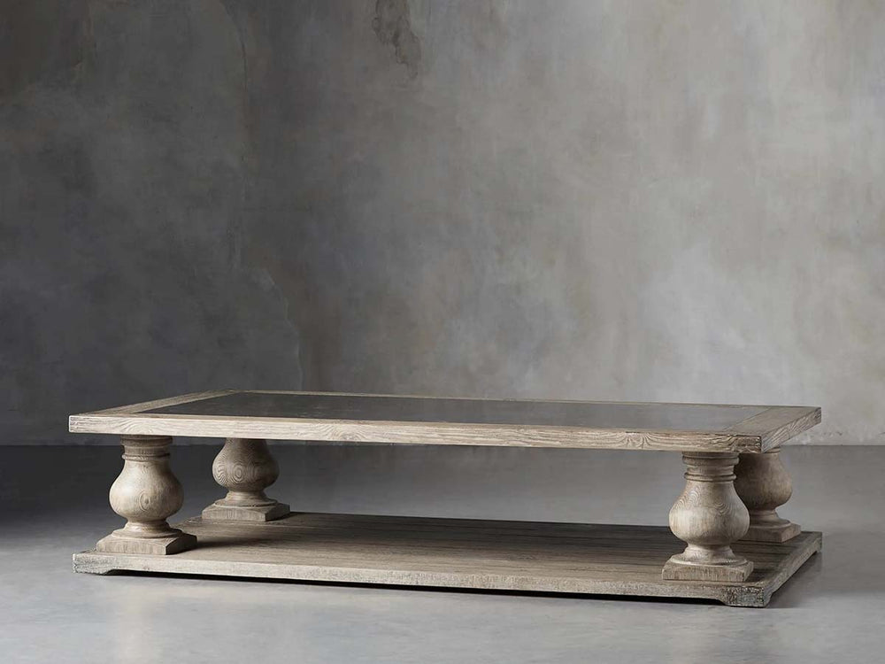 The Hudson Coffee Table reinterprets classic design with artisanal character and natural material beauty. Handcrafted from solid pine, it features elegantly turned balustrade legs and a softly distressed finish, enhanced by a centerpiece of hand-sculpted bluestone inlay. Each detail—from the timeworn wood tones to the unique variations in stone—celebrates the warmth and craftsmanship of a piece made to be cherished.