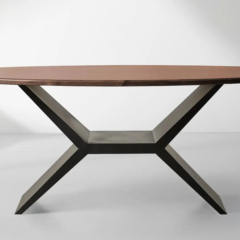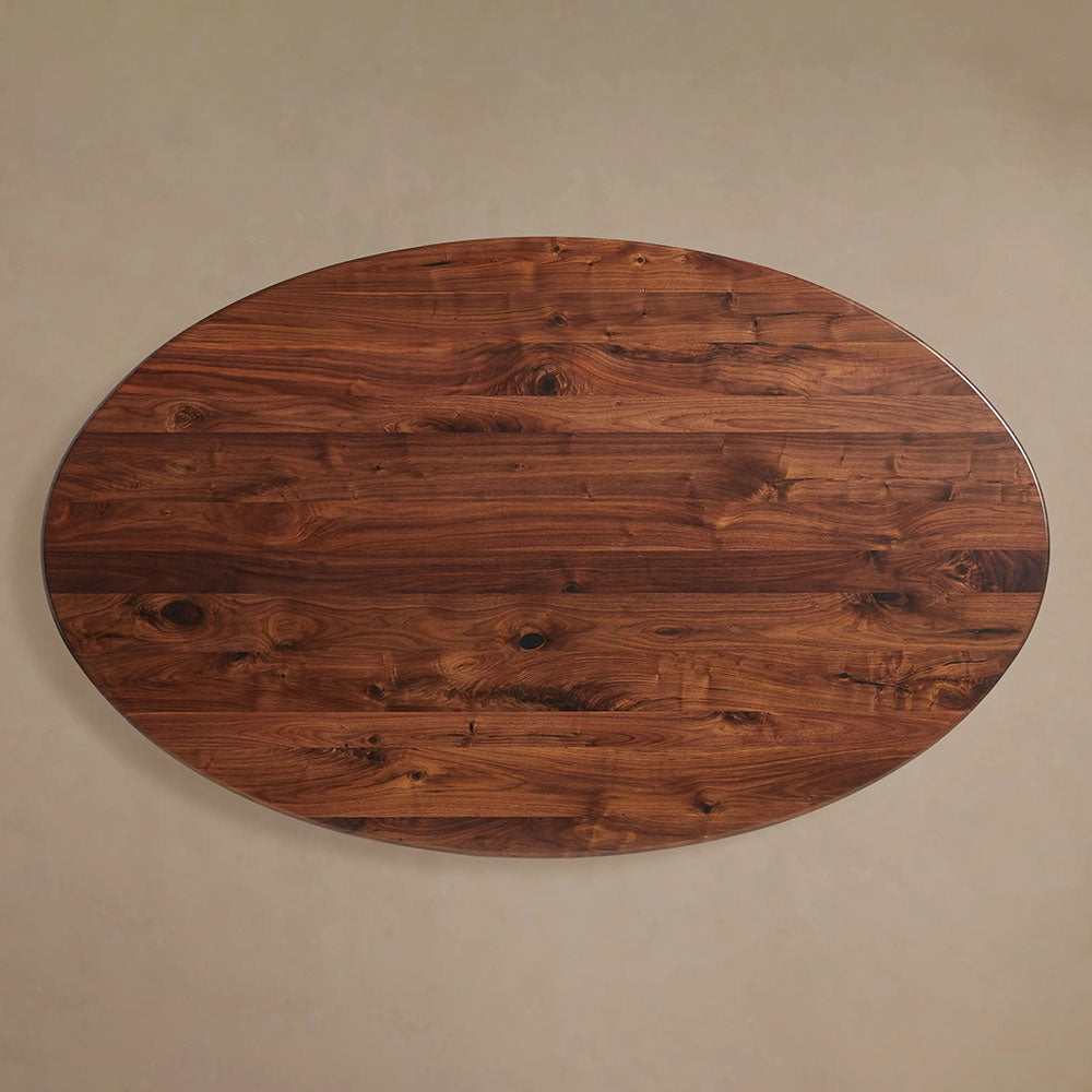 The Jacob Oval Dining Table seamlessly merges clean, contemporary design with traditional artisan craftsmanship. Expertly handcrafted by Amish woodworkers, the tabletop is fashioned from solid walnut or white oak, depending on your selected finish—rich Brown Walnut or natural White Oak. Each piece is meticulously hand-finished with oils, stains, and varnishes, enhancing the wood’s innate beauty with a luxurious high-gloss surface.