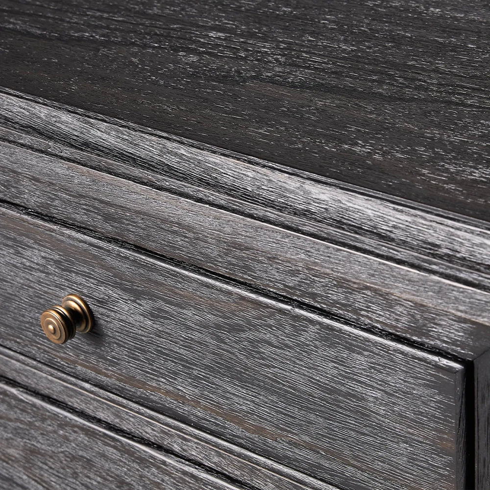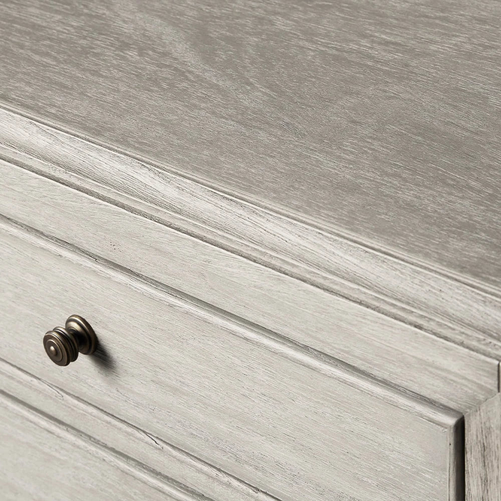 Let your vintage sensibility shine with the Lenox Nightstand, a piece that beautifully bridges historical elegance and modern functionality. Inspired by a cherished antique discovered in Lille, France, this collection pays homage to the glamour of the 1920s while incorporating contemporary conveniences. Each piece is brought to life with extraordinary attention to detail, from its stately proportions to the exquisite antique brass-finished caps that adorn the drawers.