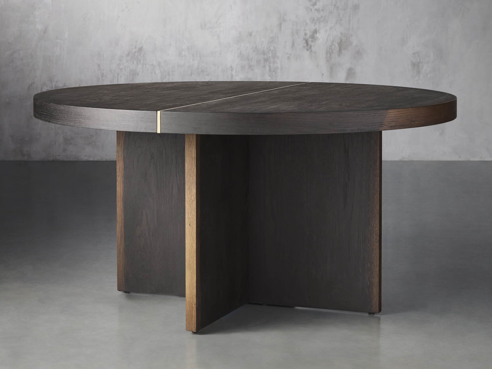 Gather in timeless elegance around the Mihaela Round Dining Table, where centuries-old craftsmanship meets modern design. Inspired by the rich, stained interiors of wine barrels, this exquisite table is handcrafted by multigenerational Romanian artisans using solid oak harvested from trees up to 250 years old in the foothills surrounding their mountain village. Each table features a unique construction of alternating Romanian oak and spruce wood layers, ensuring exceptional stability and longevity for generations of use.