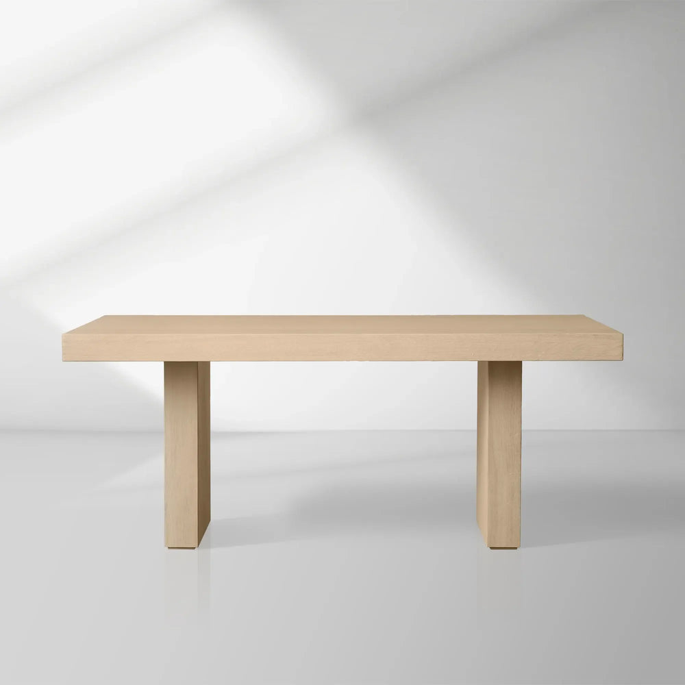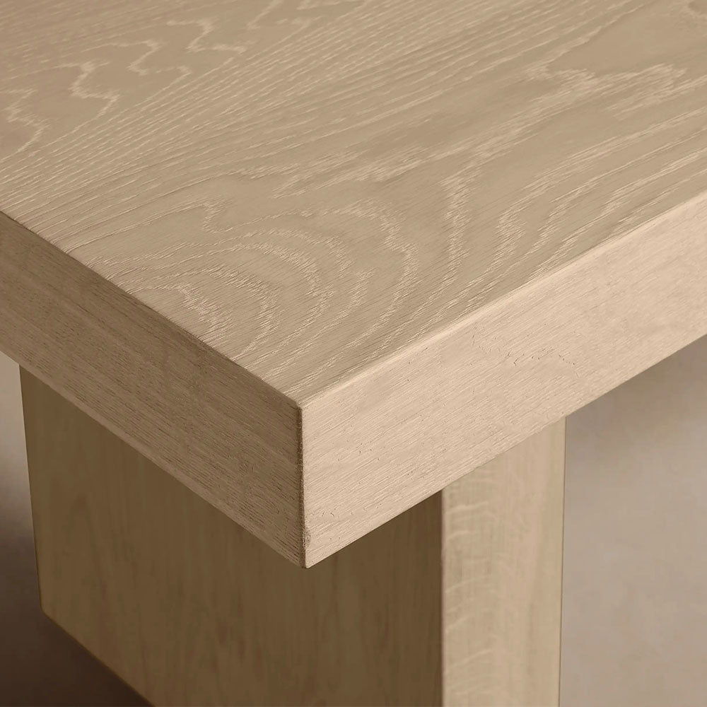 Designed for effortless style and everyday comfort, the Calvin Dining Table brings organic warmth and versatile appeal to your dining space. Expertly crafted by skilled Indonesian artisans using fine oak veneers, this table showcases the natural grain and soft tonal variations of wood, enhanced by a hand-applied clear coat of water-based lacquer for lasting protection and a subtle, smooth finish.