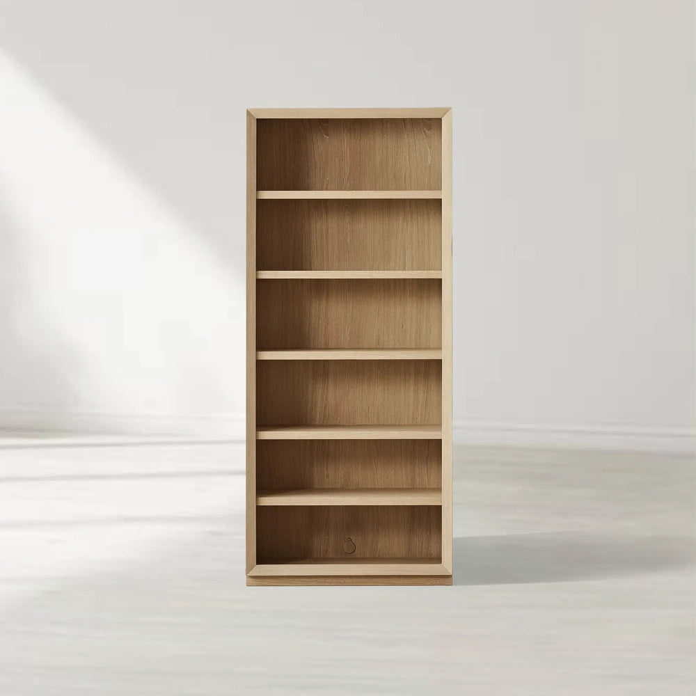 Hand-finished from natural oak, each bookcase will have its own unique grain pattern and tonal variation—a signature of its honest craftsmanship.