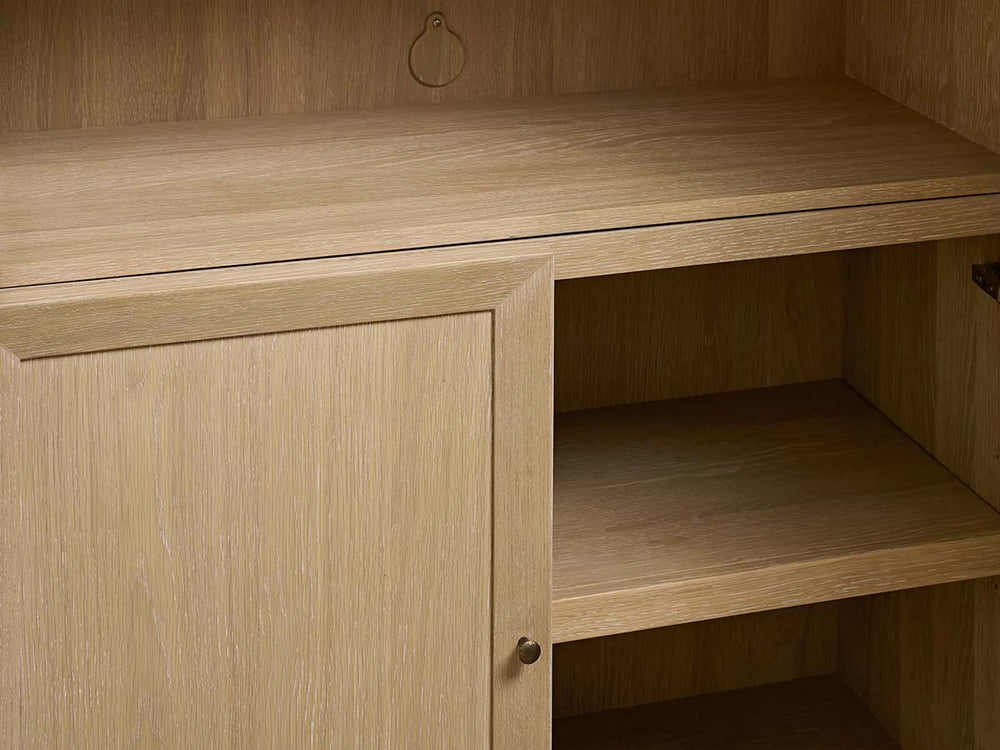 As a hand-finished piece made from natural oak, each cabinet possesses unique variations in wood grain and tone, making your display truly one-of-a-kind.