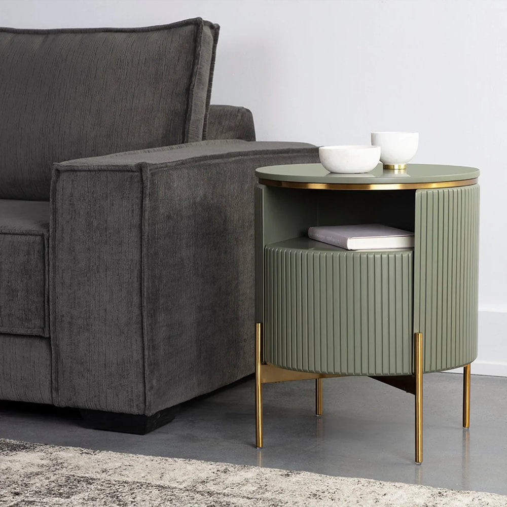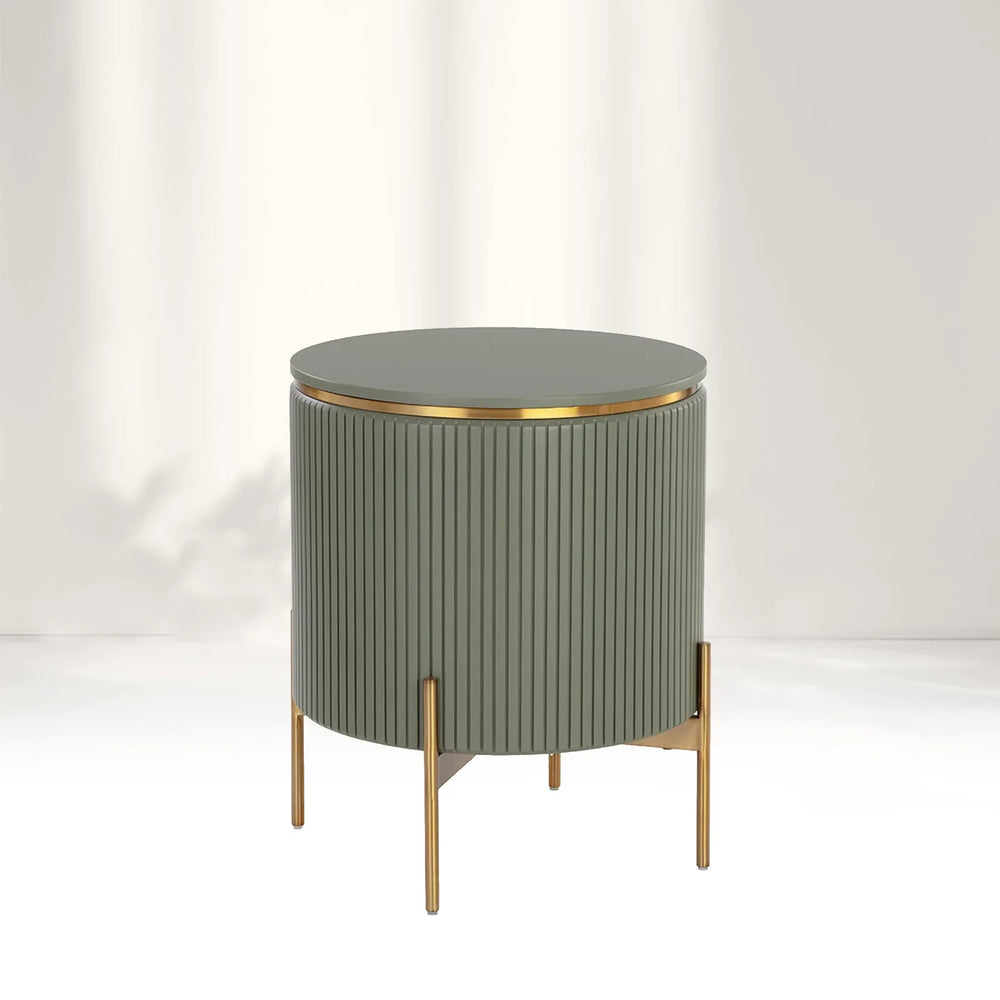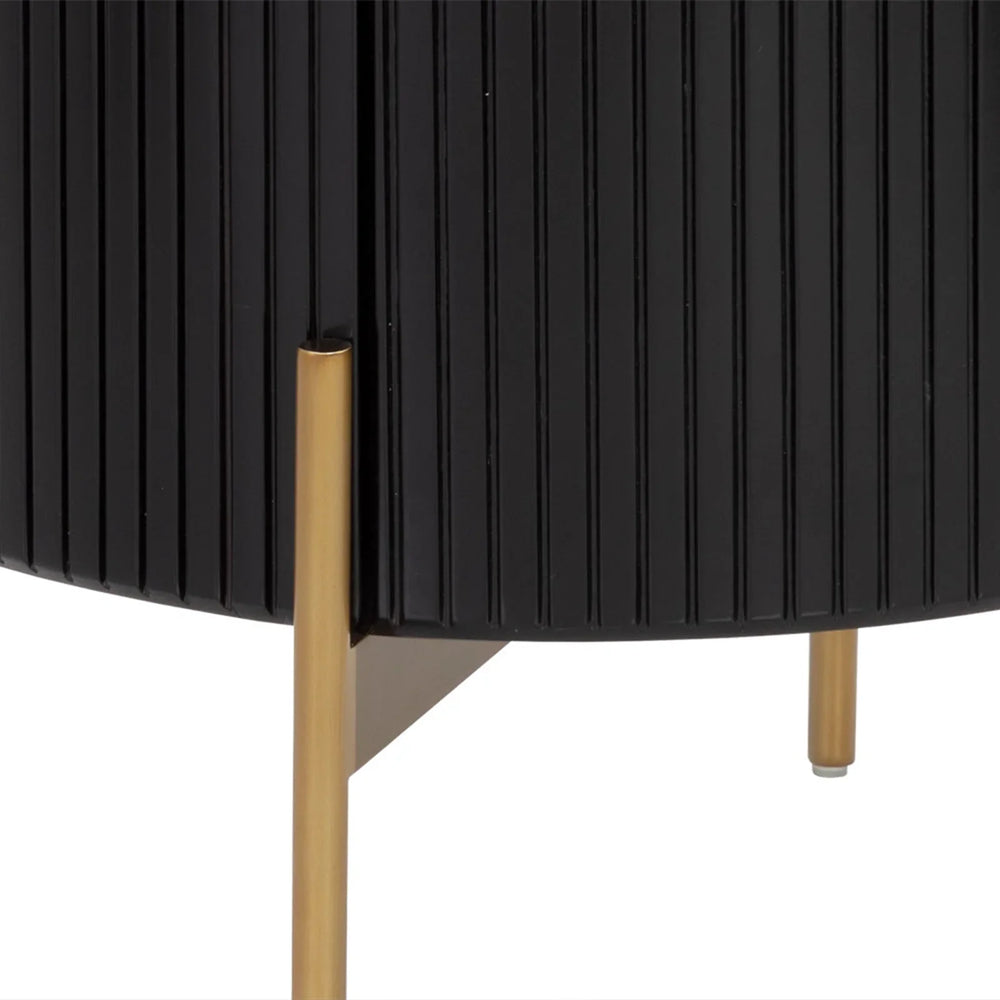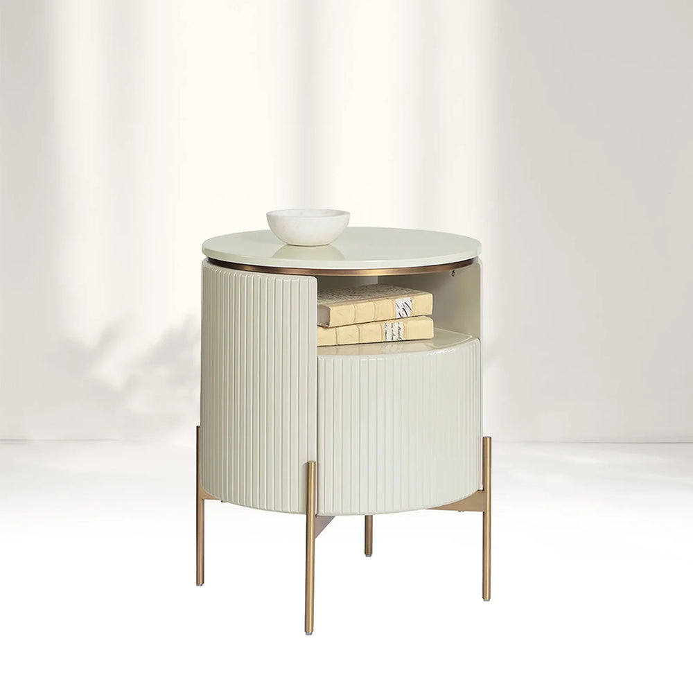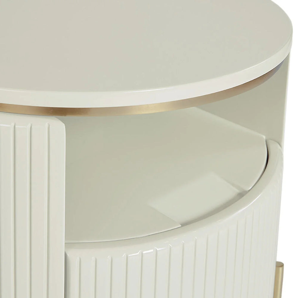 Designed by Stacy Tao, the Panoso Nightstand brings an artful sculptural presence to any interior with its gracefully curved frame finished in a luminous high-gloss cream. This luxurious piece showcases intricate vertical reeding that creates captivating visual texture, elegantly contrasted against the sleek gold-finished stainless steel base. The harmonious blend of organic warmth and contemporary glamour makes this nightstand a stunning accent piece for both bedrooms and living spaces.
