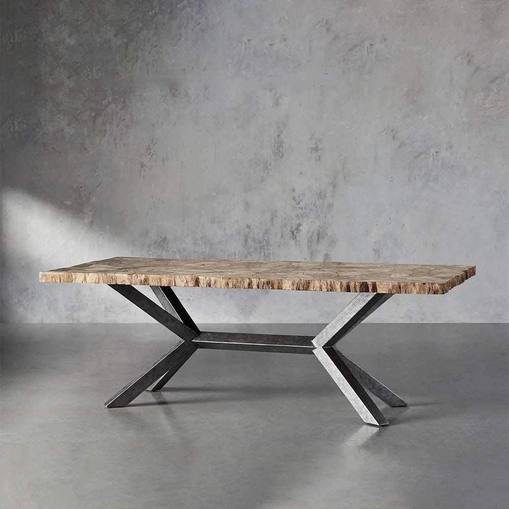 Celebrate nature’s artistry with the Petra Rectangle Dining Table—a collection defined by rare, ethically sourced materials and masterful artisan craftsmanship. Each table is a unique work of functional art, featuring your choice of hand-selected surfaces: fossilized petrified wood, white century marble, or grey marble—meticulously mosaicked into stunning tabletops that tell a story of time and terrain.