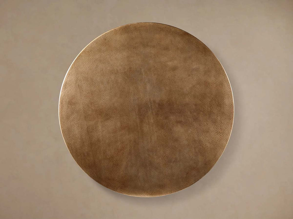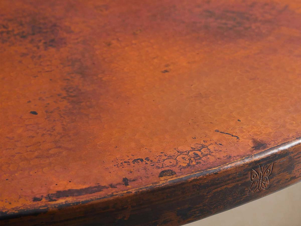 Blending mid-century modern lines with French bistro charm, the Recycled Metal Bistro Table brings artisanal character to any dining space. Its substantial Wade base is cast in solid iron by skilled Indian artisans, featuring a hand-rubbed patina that develops unique character over time. This versatile base pairs beautifully with an artisan-crafted tabletop forged from 100% recycled metal—choose from rich copper, warm brass-finished aluminum, or textured zinc alloy.