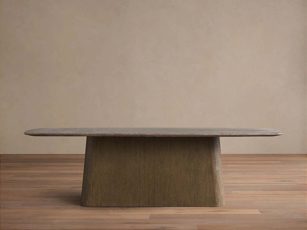 The table rests upon the Toulouse base, expertly crafted from plywood and oak veneers to provide both strength and visual warmth. As each stone is formed by nature and each component finished by hand, your Saint Germain table will carry its own distinctive character—making it not just furniture, but a work of art designed to be cherished for generations.