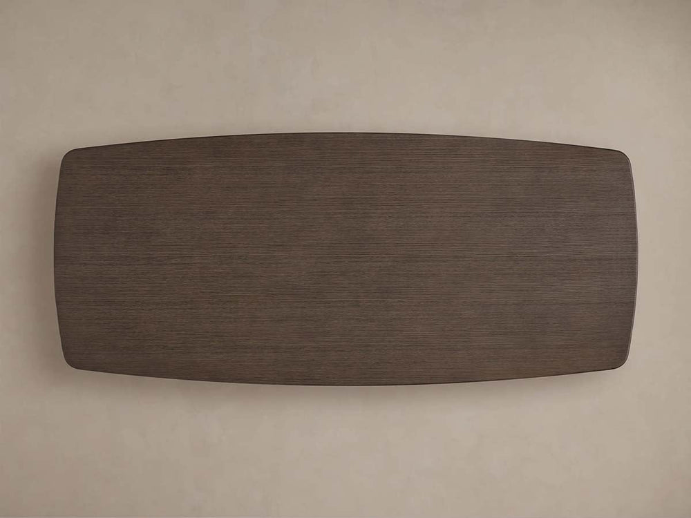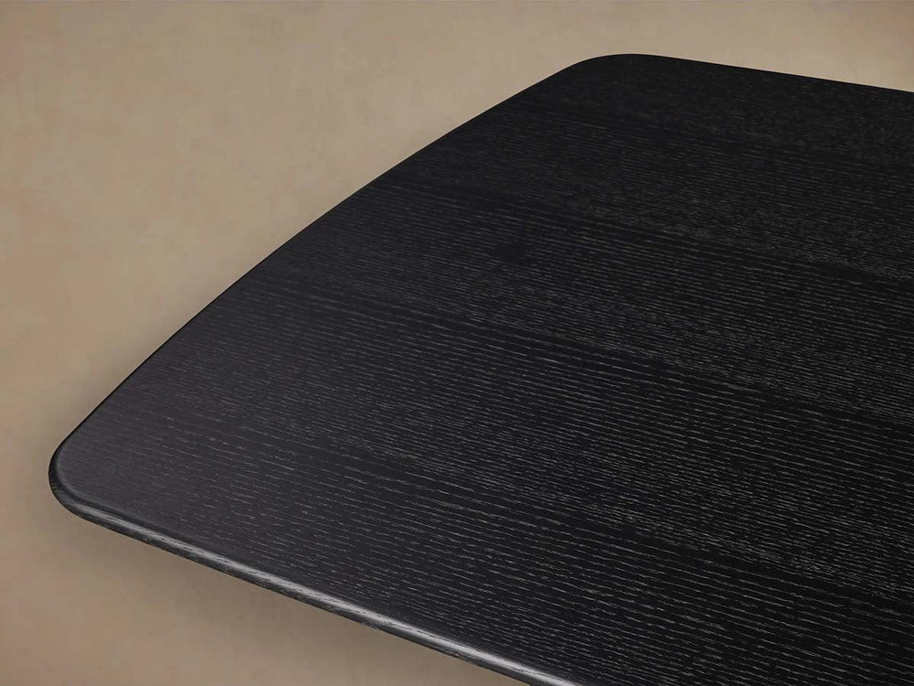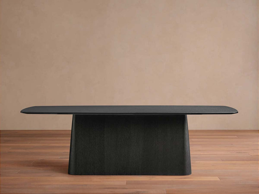 The generously proportioned tabletop is expertly crafted from solid oak and oak veneers, available in your choice of rich Ebony or warm Chestnut finishes that enhance the wood's natural grain. Beneath it rests the sculptural Toulouse base, constructed from plywood and finished with oak veneers for both durability and visual warmth.