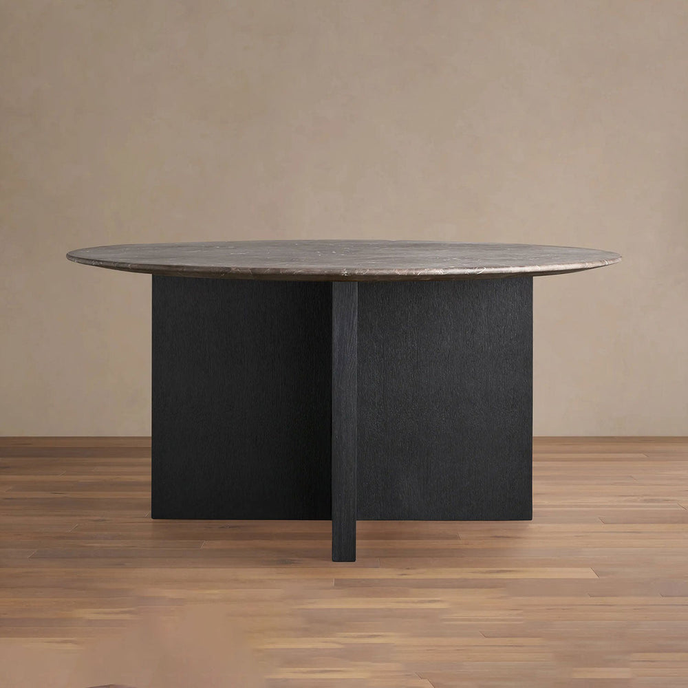 The substantial tabletop is available in three distinctive stone options: authentic Carrara marble sourced from Italy, soft cream marble, or rich espresso brown stone. Each top is reinforced with engineered hardwood joinery, ensuring lasting stability for daily use. The stone's natural character—expressed through unique veining, mineral deposits, and organic patterns—becomes a captivating focal point in your dining room.