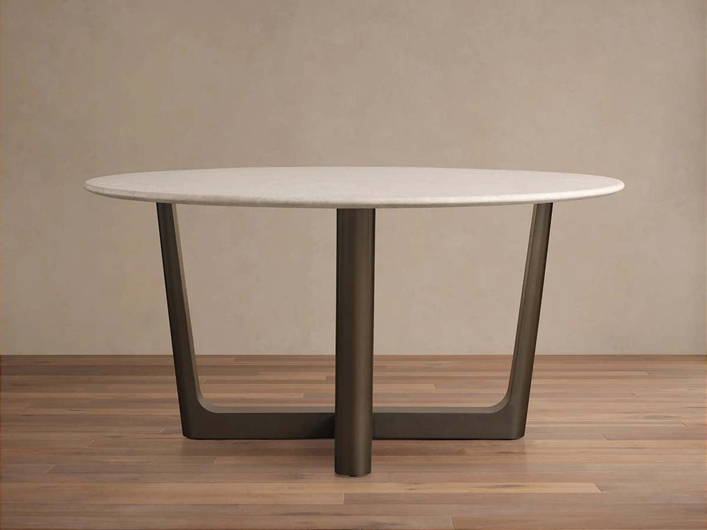 Complementing the stone's organic beauty, the Rennes base is offered in your choice of metallic finishes: Antique Bronze or Antique Brass, both crafted from solid steel for enduring strength and contemporary appeal. As each stone slab is formed by nature and each component finished by hand, your Saint Germain table will carry its own distinctive character—making it not just furniture, but a work of art designed to be cherished for generations.