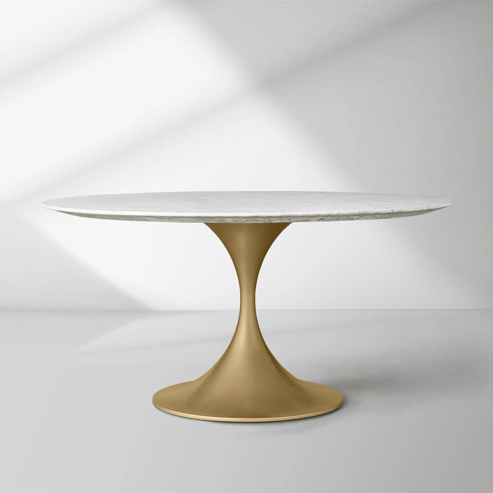 Experience the perfect blend of organic elegance and contemporary design with the Saint Germain Round Stone Dining Table. Meticulously crafted as part of our Mix and Match Collection, this stunning table features a genuine stone top—available in Italian Carrara marble, cream marble, or rich espresso brown stone—expertly paired with our sleek Launette steel base. The circular design fosters intimate conversation and seamless flow, making it ideal for both lively entertaining and everyday dining.