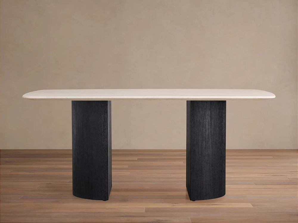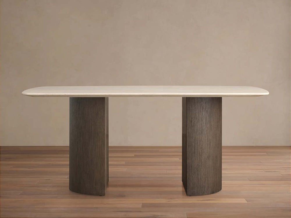 Choose from three exquisite stone options: classic Carrara marble sourced from Italian quarries, soft cream marble, or rich espresso brown stone. Each tabletop is reinforced with engineered hardwood joinery, ensuring exceptional stability and durability. The stone's natural character—seen in unique veining, mineral deposits, and color variations—is celebrated as part of its authentic beauty.