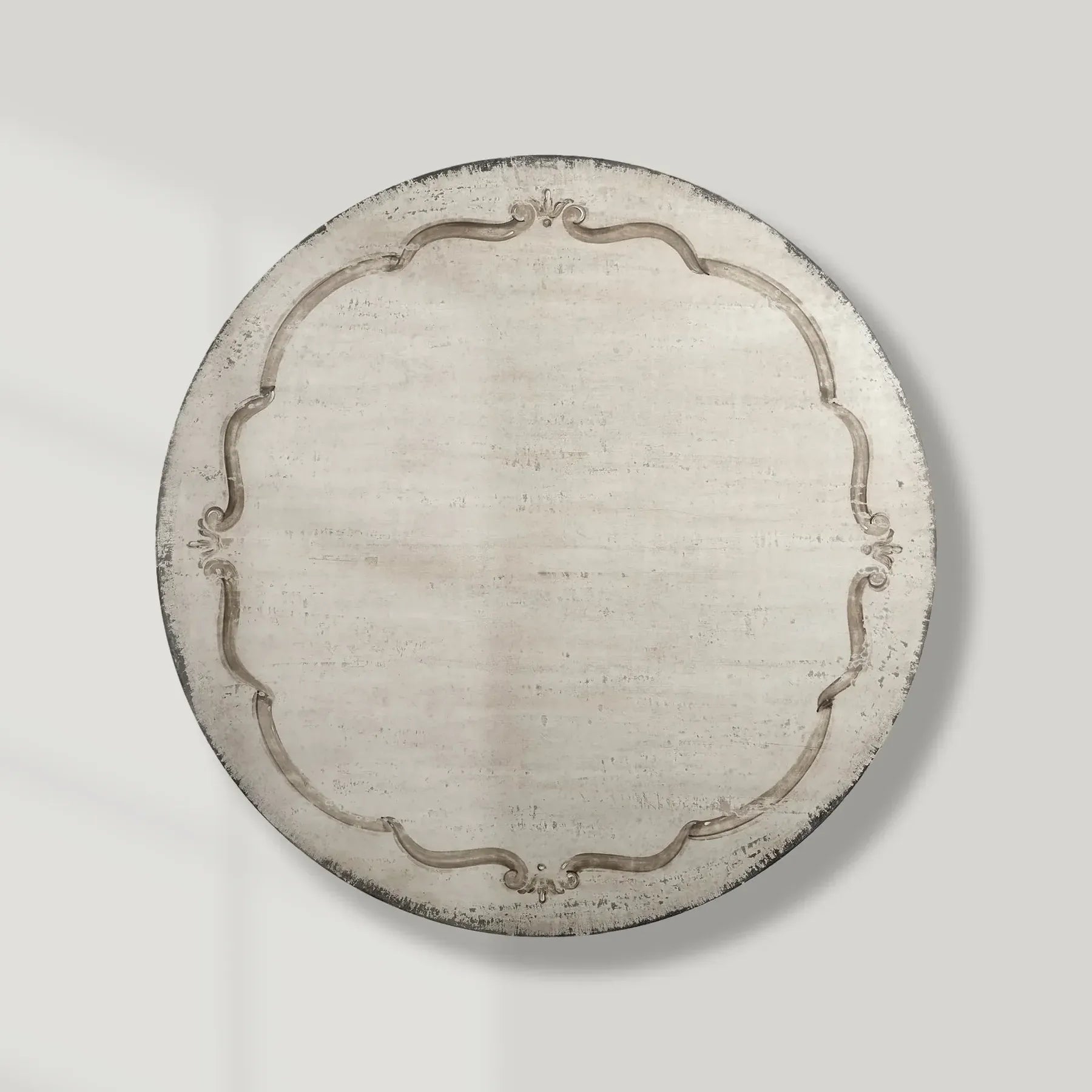 For over thirty years, we have collaborated with a cherished family of Italian artisans, blending heritage, heart, and handmade excellence into every piece. The Serra Ribbon Round Dining Table—inspired by the historic town near their workshop—is sculpted from and adorned with an elegantly hand-painted ribbon border that gracefully wraps the tabletop.