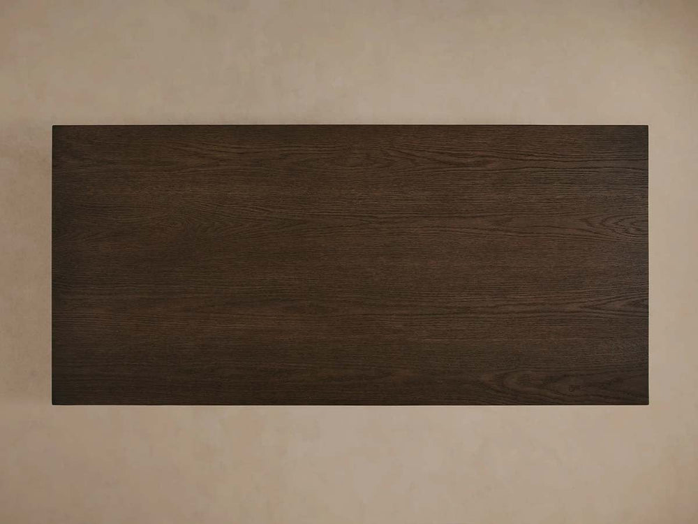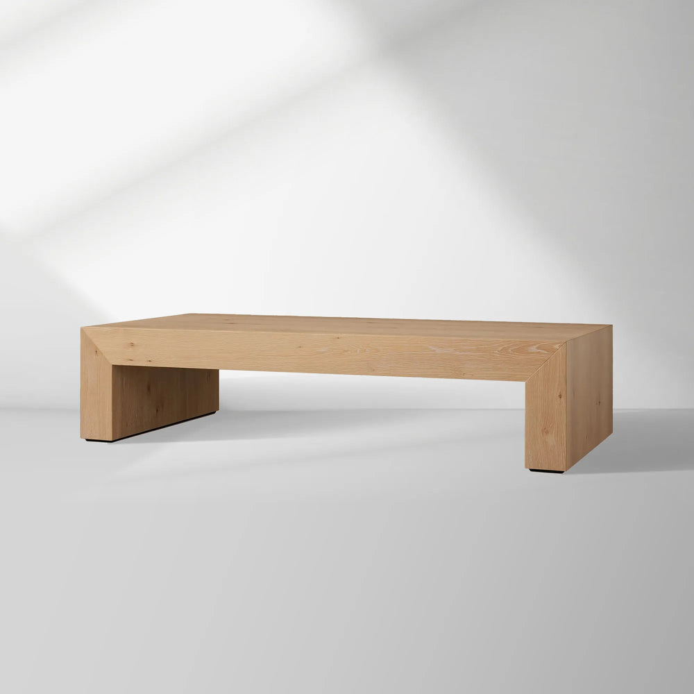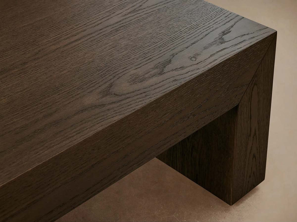 The Sullivan Waterfall Coffee Table combines a clean, contemporary silhouette with the organic beauty of sustainably sourced European oak. Expertly handcrafted, its defining waterfall edge—achieved through precise miter joinery—allows the wood’s natural grain to flow seamlessly from the tabletop down each side. Finished with a layered glaze and matte lacquer, this piece celebrates the unique character of solid oak, including natural weathering, saw marks, and subtle imperfections, making it a functional work of art for the modern living space.