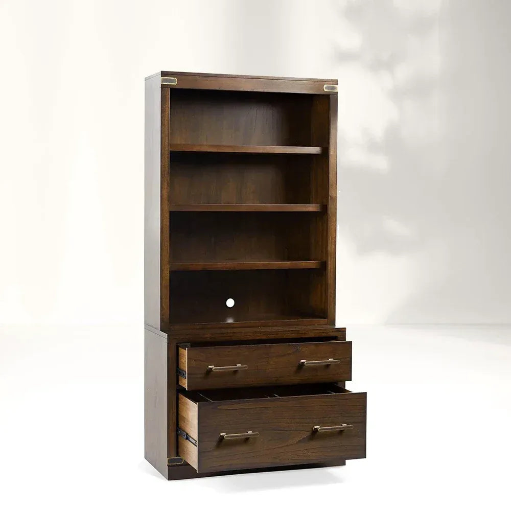 Each bookcase includes adjustable and removable shelving, cord management, and optional brass library sconces (hardwired or plug-in). File bases feature two full-extension drawers with ball-bearing glides, accommodating legal and standard file sizes. Designed for both style and stability, the Tremont system includes mending plates and anti-tip kits for secure assembly.