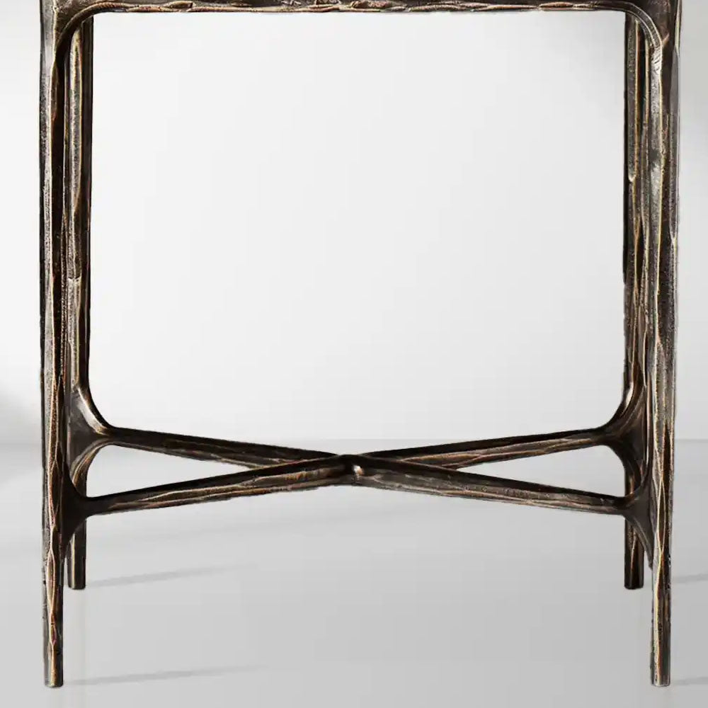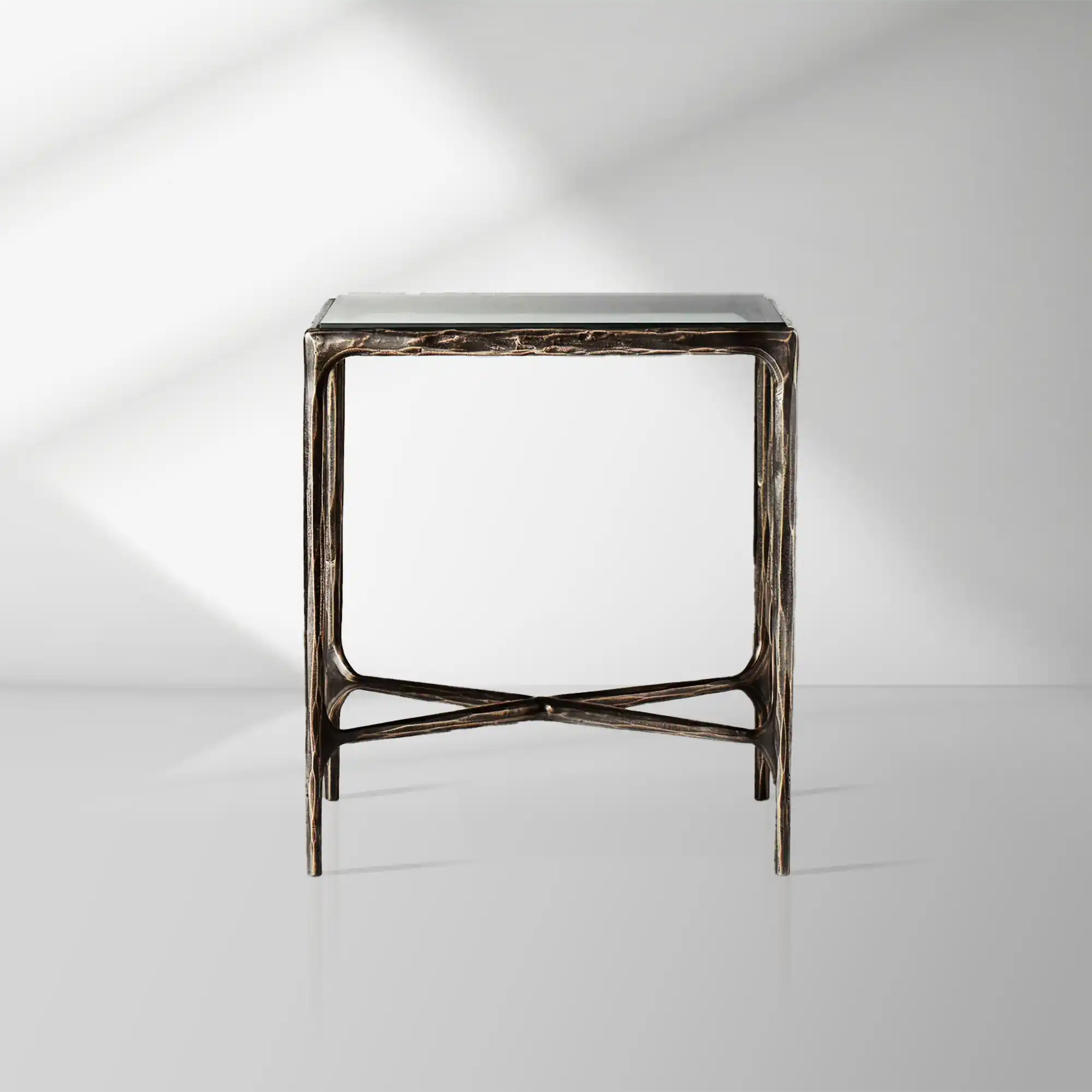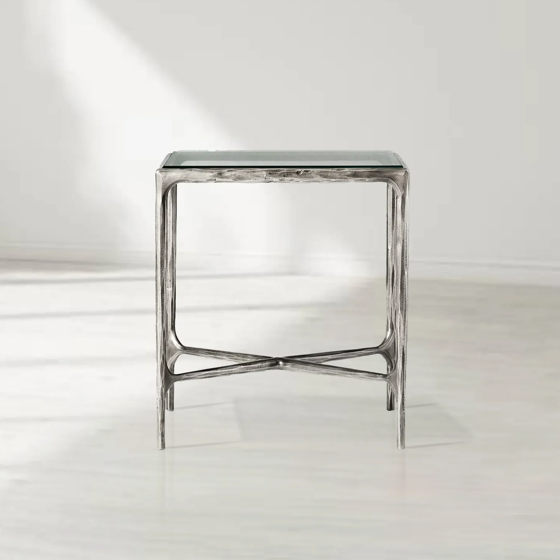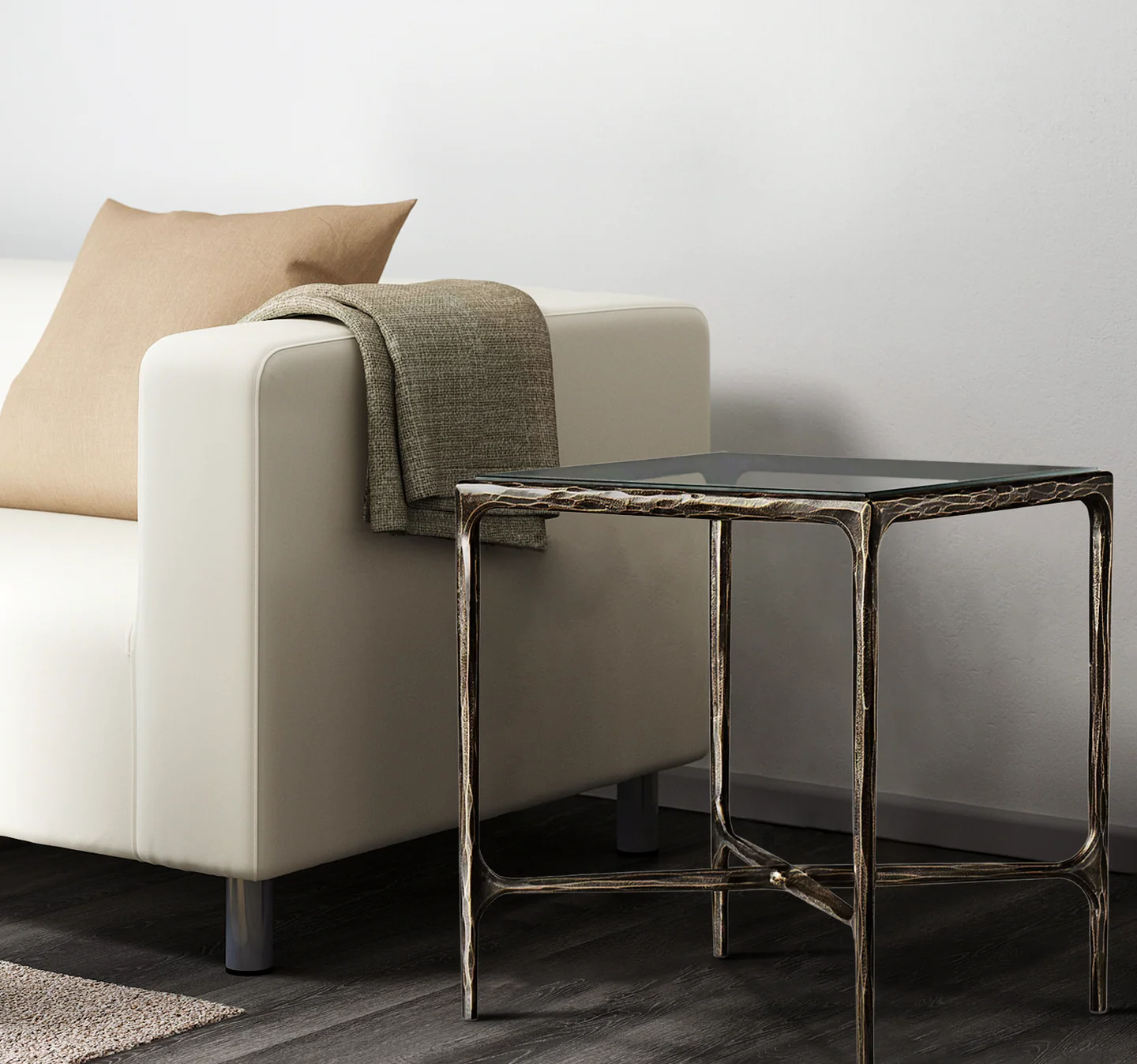 Crafted with precision and artistry, the Thaddeus Square Side Table combines durability and elegance in a versatile design. The frame is forged from solid metal and meticulously hand-hammered, resulting in a distinctive texture and exceptional strength. Choose from three refined finishes: