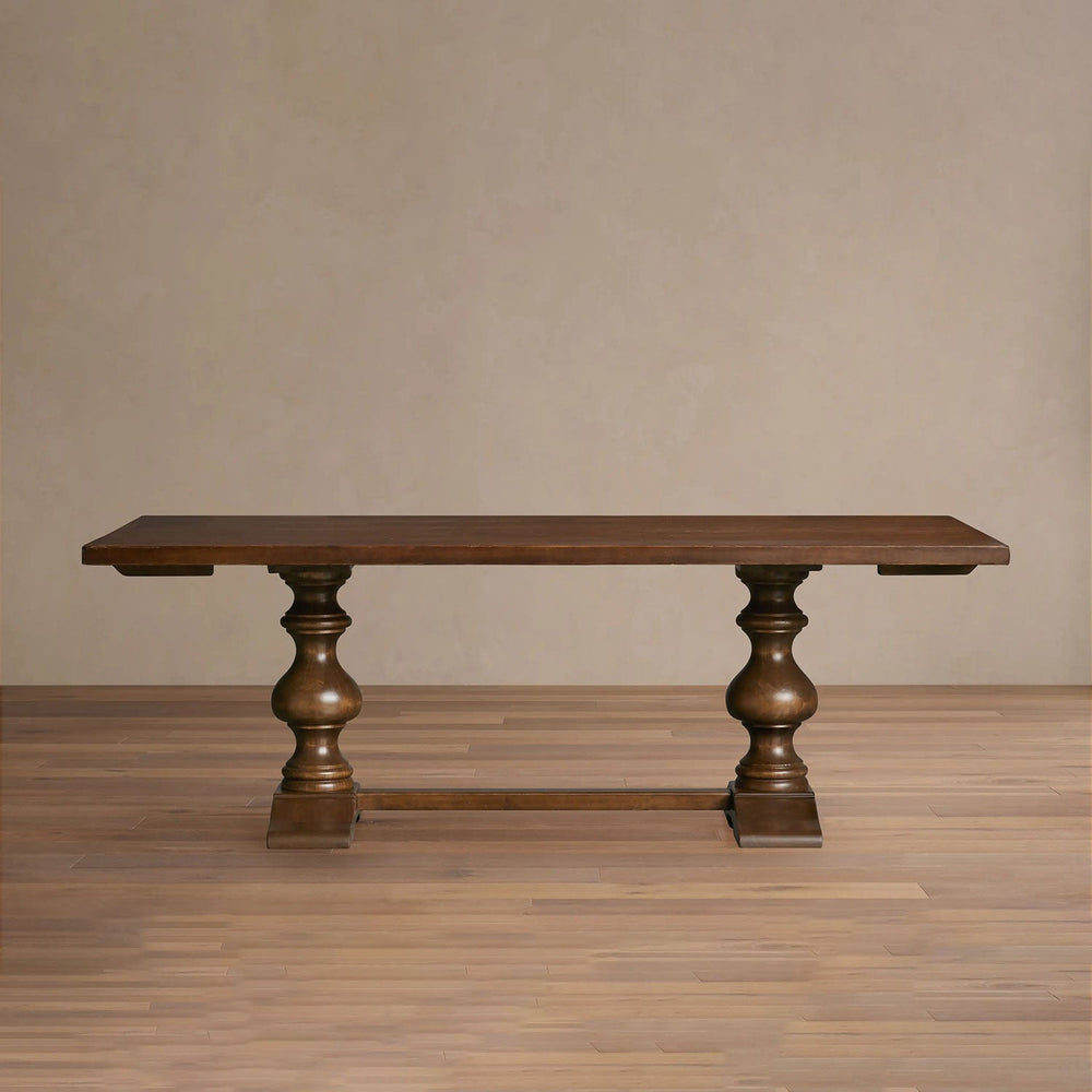 Sealed with multiple layers of protective lacquer, this table is designed to age gracefully through years of shared meals and memories.