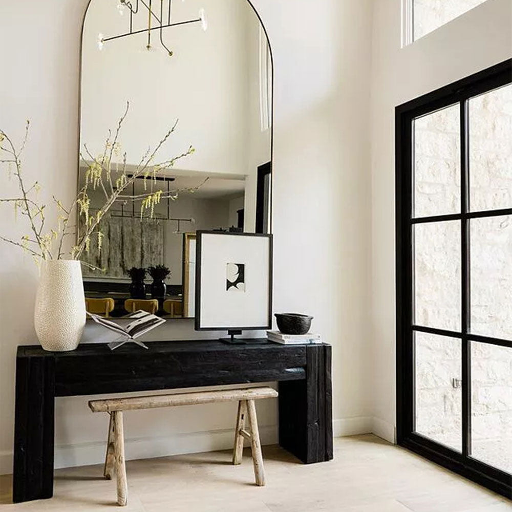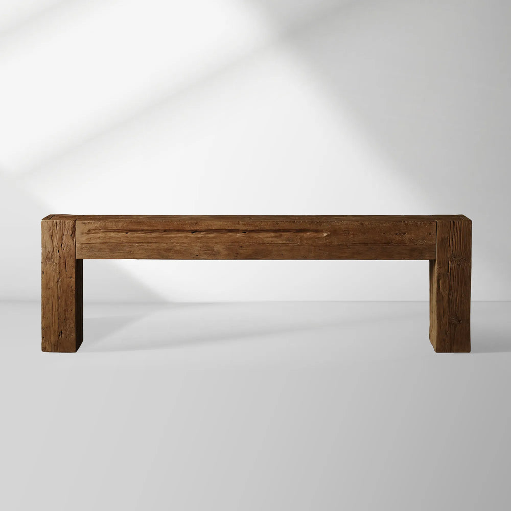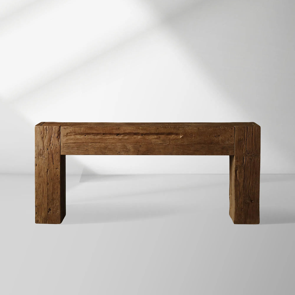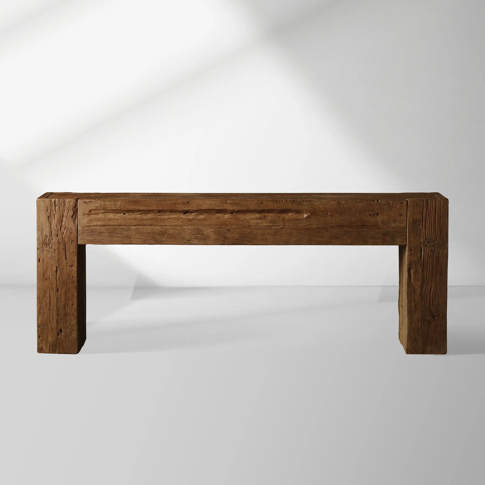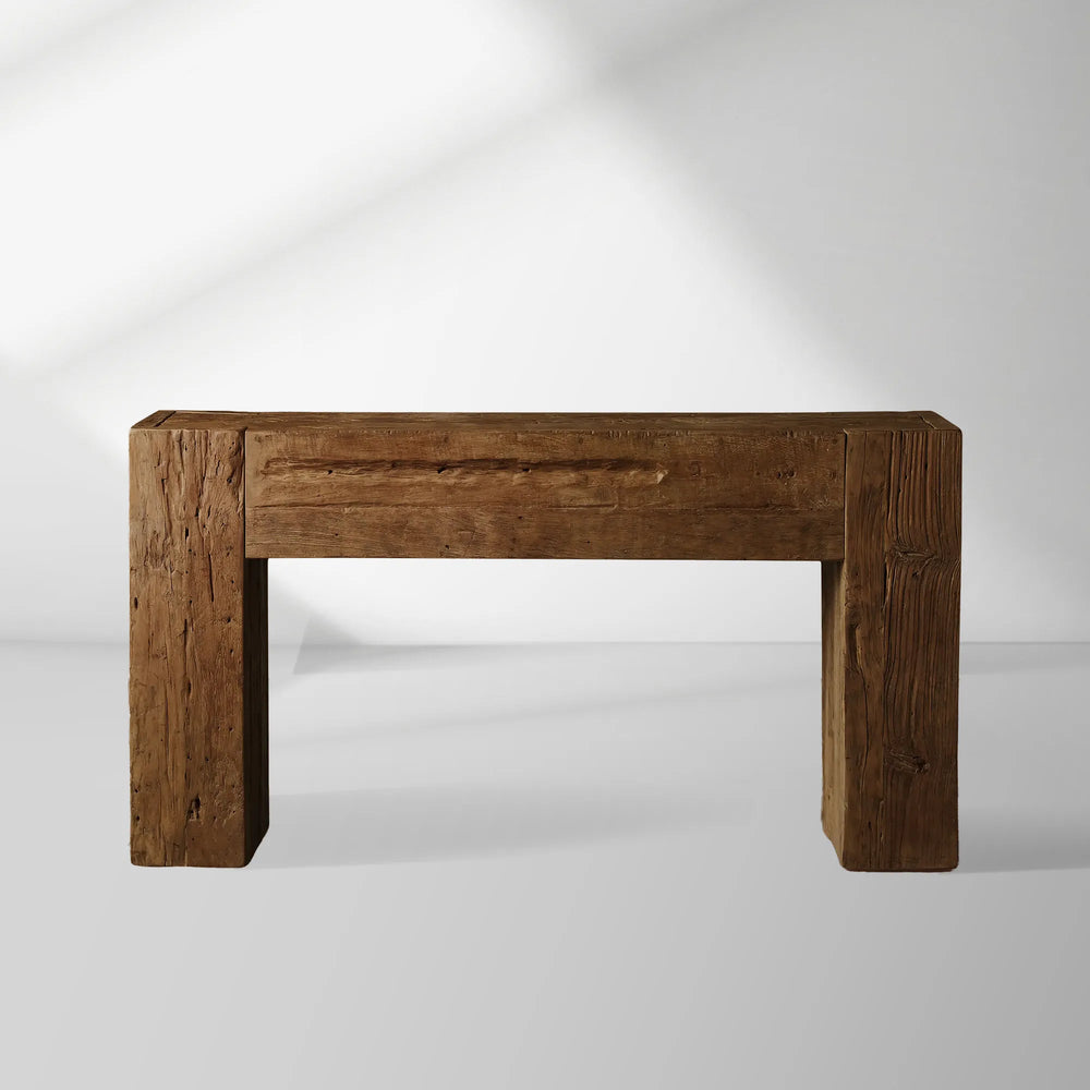 Crafted from reclaimed teak wood, the Ubud Console Table embodies rustic elegance and artisanal character. Each piece tells its own story through organic variations in color, grain, and texture—including natural knots, subtle splits, and joint lines that enhance its one-of-a-kind appeal.