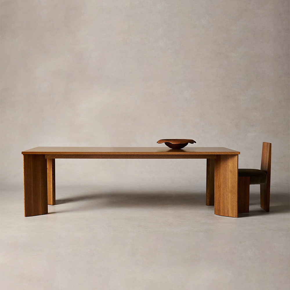Anchor your dining space with the Yorn Wood Dining Table—a masterful union of bold geometry and artisanal woodworking. Designed to command attention, this table combines a generous, clean-lined tabletop with dramatically beveled legs, set at a striking angle to create a dynamic yet balanced presence. Ideal for everyday meals and memorable gatherings alike, the Yorn Table becomes the natural centerpiece of your home.